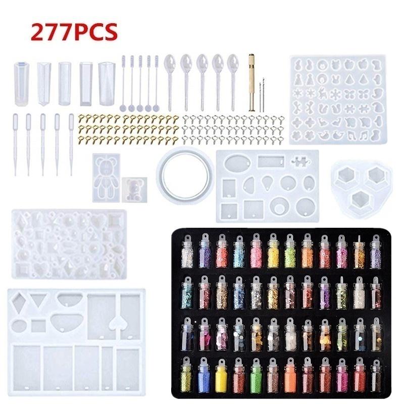 -Включает в себя ювелирные формы, винтовые глазки, мешалки, капельницы и ложки, ручную дрель.