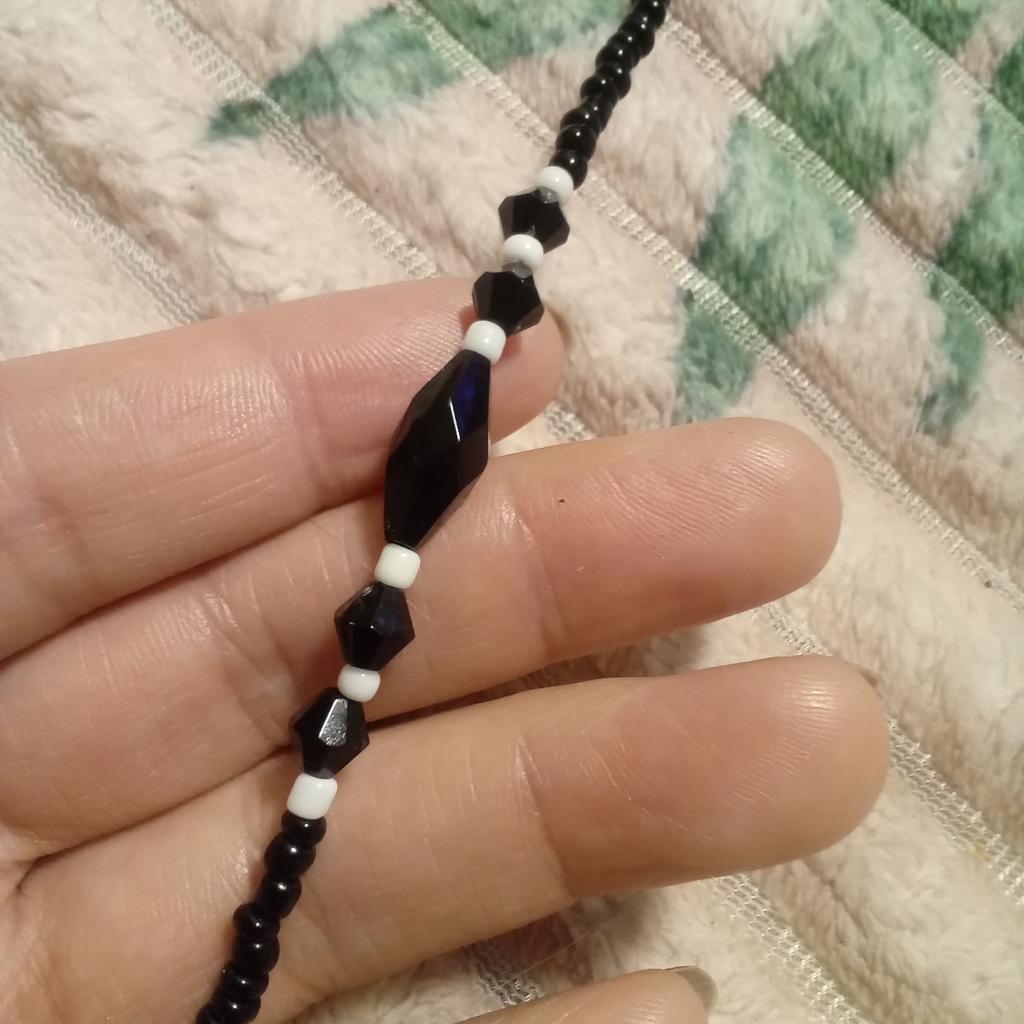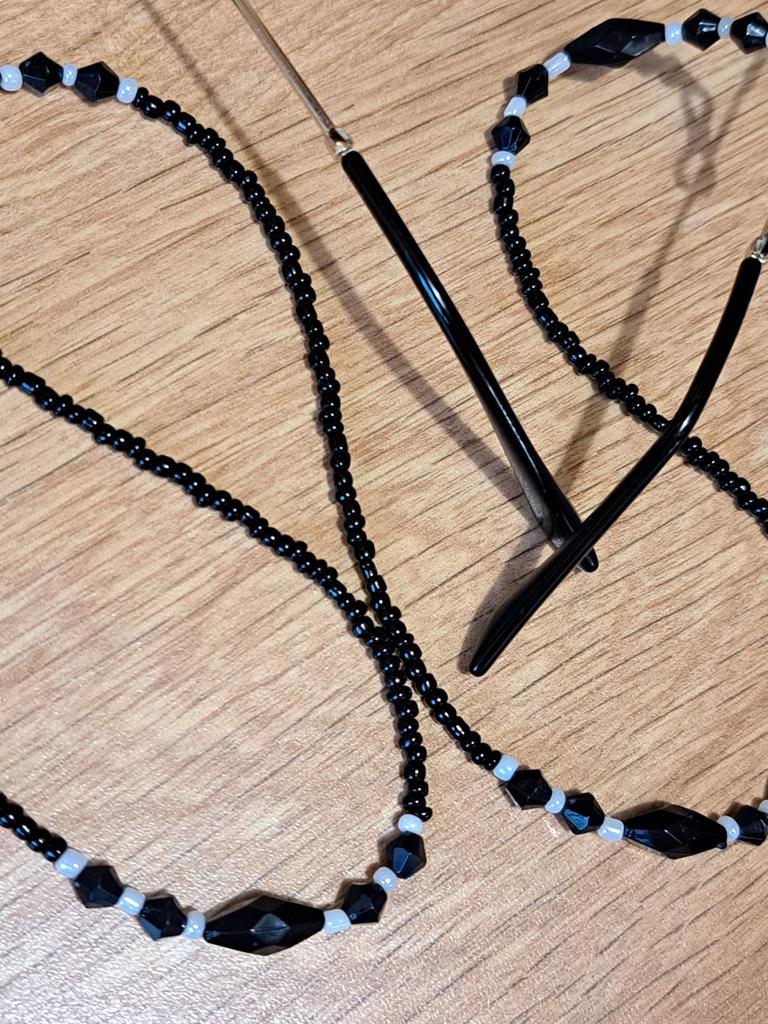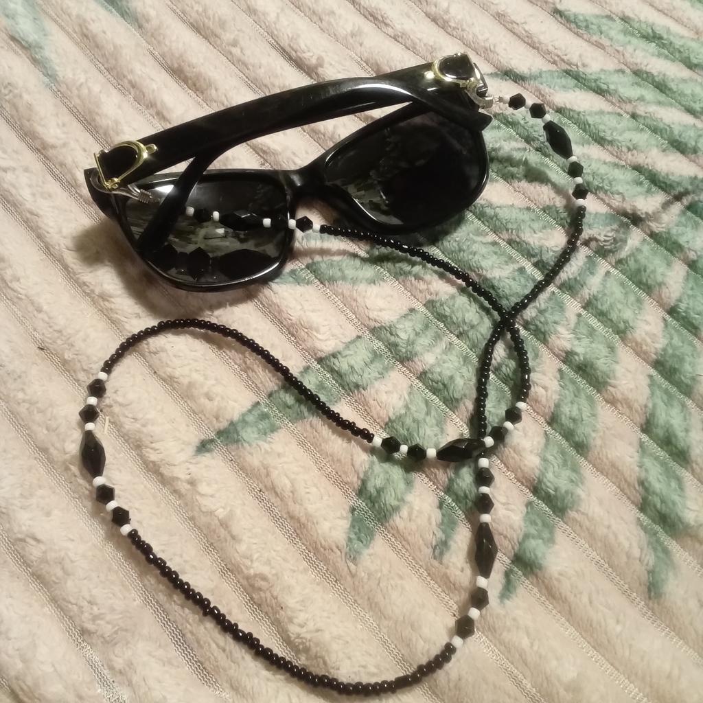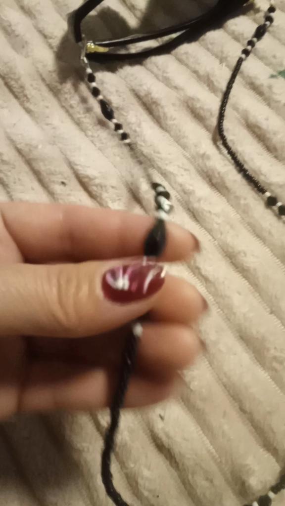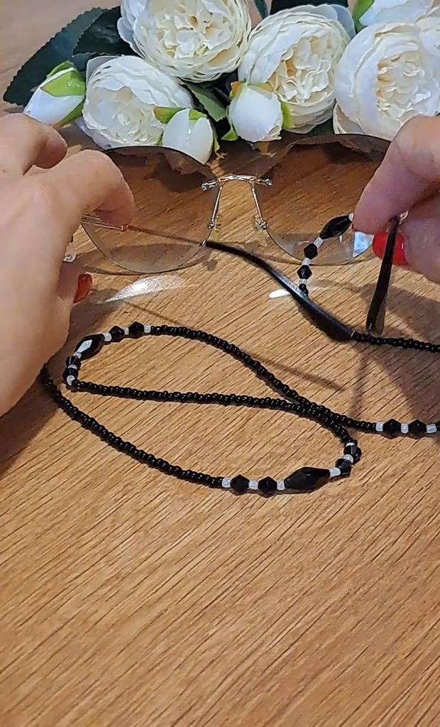 Цепочка для очков с бусинами 👍💯 Цепочка длинная, соответствует размерам продавца 🙂, бусины разной величины на леске ☝️ Расположены плотно друг к другу, немного переливаются 💥 Цвет черный, насыщенный 🤗 Цепочка крепится к очкам силиконовыми зажимами с обеих сторон, держится отлично 👍💯 По качеству претензий нет, без дефектов 💯 Рекомендую 🤗 к покупке 💯