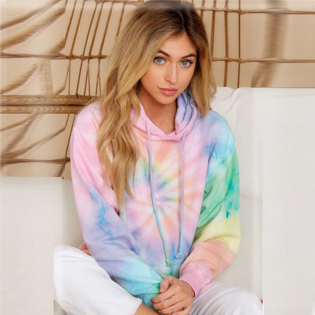Женский свитерПовседневная свободная толстовка с капюшоном, окрашенная в технике тай-дай, домашняя с длинным рукавом