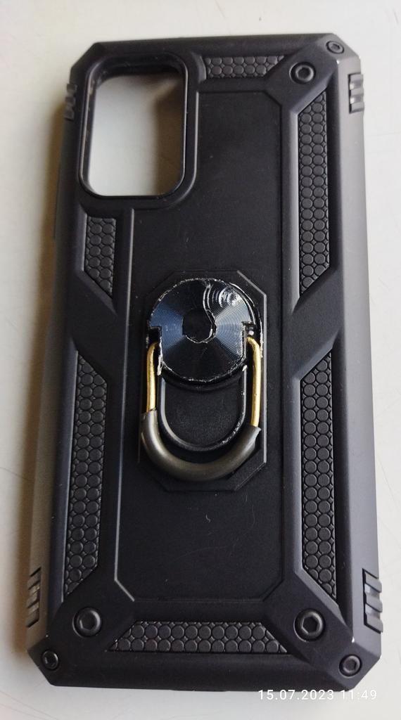 Чехол с металлическим кольцом. Вообще, очень твердый, мощный и надёжный, противоударный. Беру уже третий такой. Нравится, просто Бомба. Спаян как бы из двух или даже трёх частей: жёсткие черная и цветная части, и мягкая силиконовая та, что вокруг экрана телефона. Жёсткие рельефные ребра контура чехла очень удобны анатомии ладони - даже очень сухие и неловкие руки удержат телефон. Недостатки: пальцем очень удобно держать кольцо, и оно со временем просто развалится так как держится в основе на небольших втулках, поэтому им лучше пользоваться действительно по необходимости. Краска чехла примерно через 3 месяца начинает сходить по краям, но не целиком - уже хорошо. Если хотите использовать гнездо наушников, то готовьтесь, что кабель не зайдет в него, так как отверстие чехла не пустит🤷 Я готова смириться с этими неудобствами, и даже не считаю, что телефон в таком чехле смотрится тяжёлым и громоздким. Просто я уверена, что телефон в безопасности именно в этом чехле! Рекомендую! Всем удачных покупок ♥️♥️ ♥️