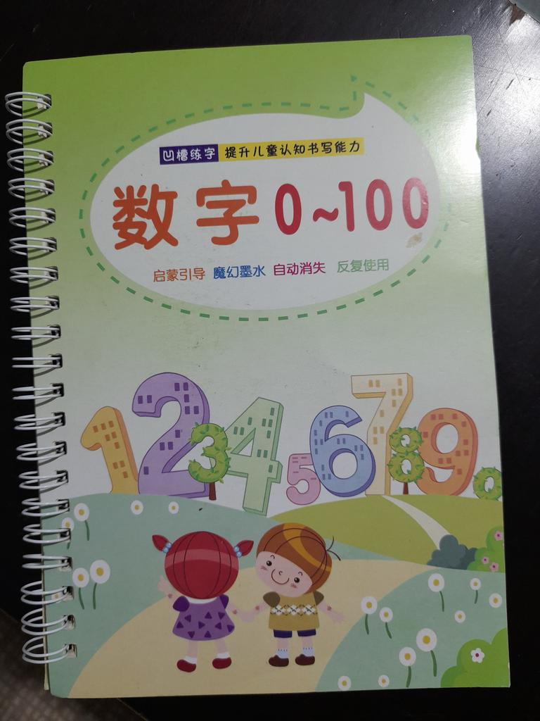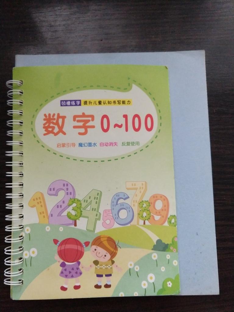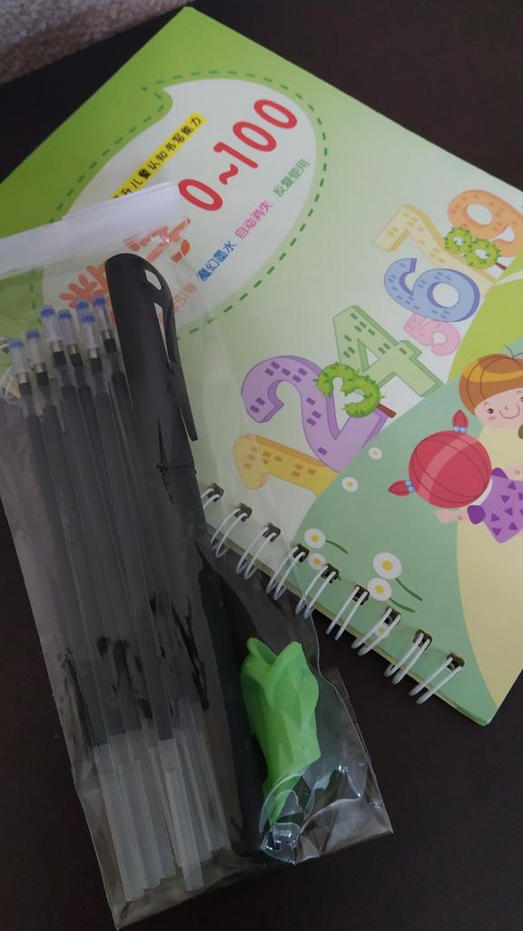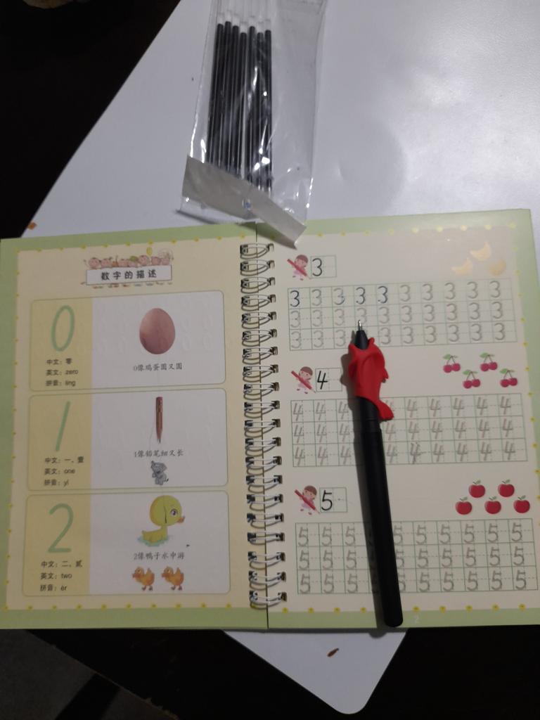 Получила на почте вместе с другими заказами. Пришло достаточно быстро - 3 недели. Качество ожидала лучше. Страницы не из картона, а из плотной бумаги, цифры почти не вдавлены, только совсем немного. Формат тетради меньше обычной. Цифра 5 пишется не так, как по русски. Ручка хорошая, резиновый держатель и стержни тоже. В тетради пока не писали, исчезают ли чернила не могу сказать. В целом ничего, но без скидки не взяла бы.