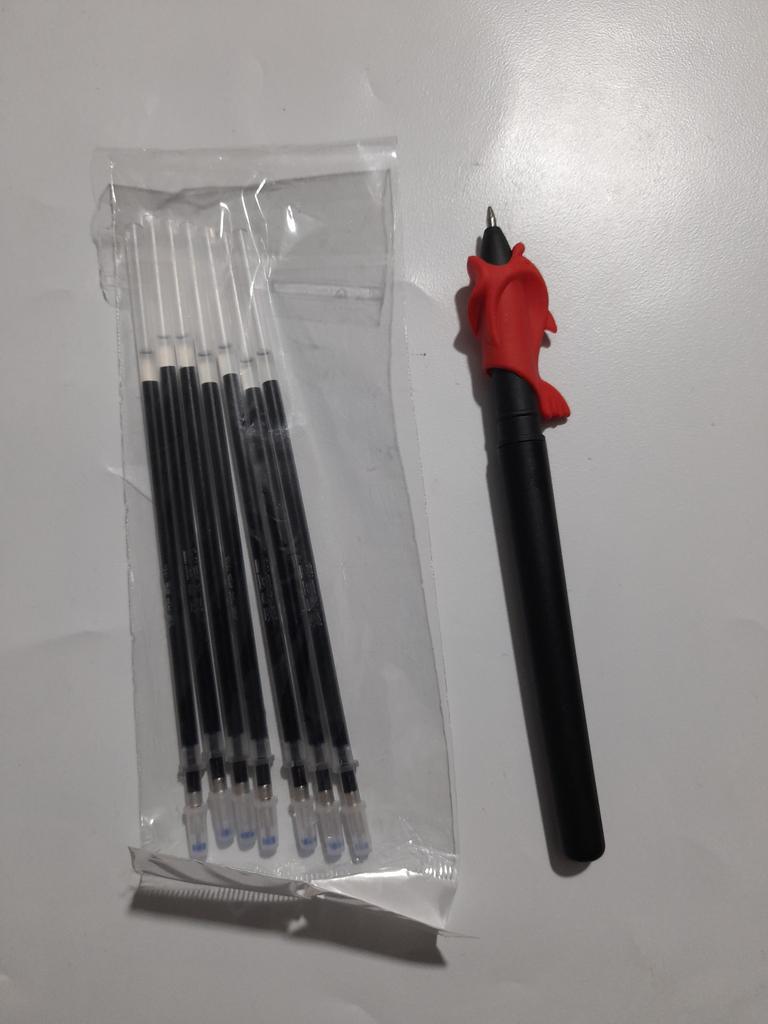 Посылка дошла за 4 недели в Воронеж. В посылке было: блокнот формата А5, ручка, 8 стержней и тренажёр-дельфин для правильного удерживания ручки. Блокнот из плотного картона, образцы цифр немного вдавлены, писать по ним удобно. Написание цифр своеобразное, например "единица" представлена просто палочкой, но для развития мелкой моторики и плавности письма пойдёт. Паста после написания постепенно бледнеет и становится бесцветной. После первого раза, ребёнок был расстроен, что все его старания исчезли)). Тренажёр-дельфин в самом деле удобный, пальцы ставятся правильно. Покупкой довольна, рекомендую и товар и продавца.