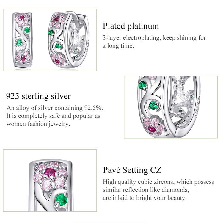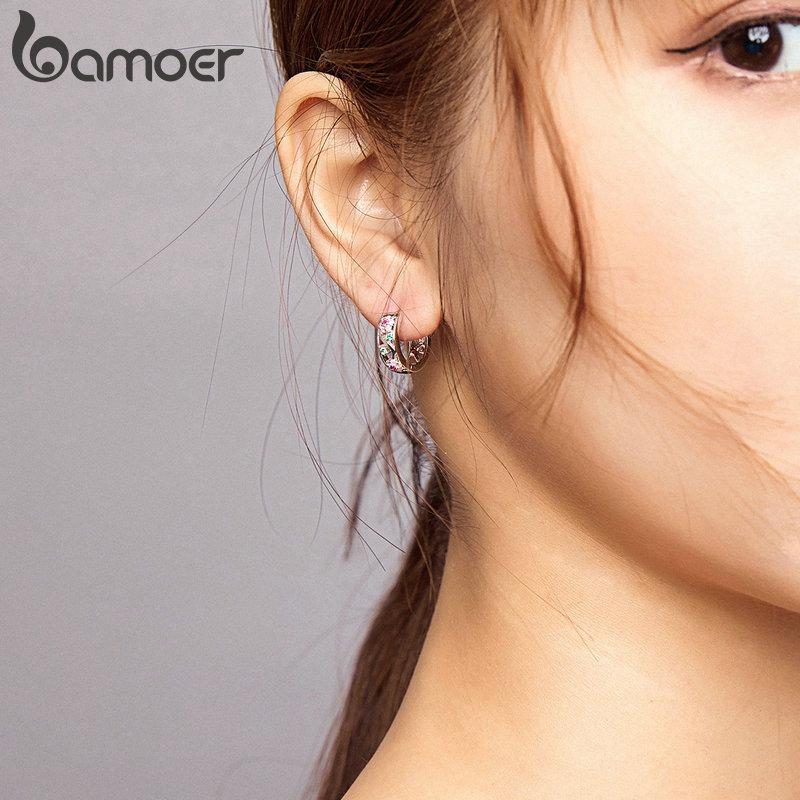 Женские серьги-кольца Bamoer из стерлингового серебра 925 пробы с весенними цветами, свадебные украшения для помолвки