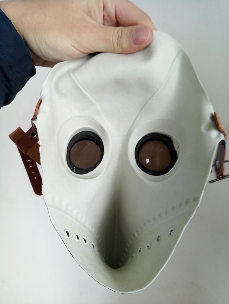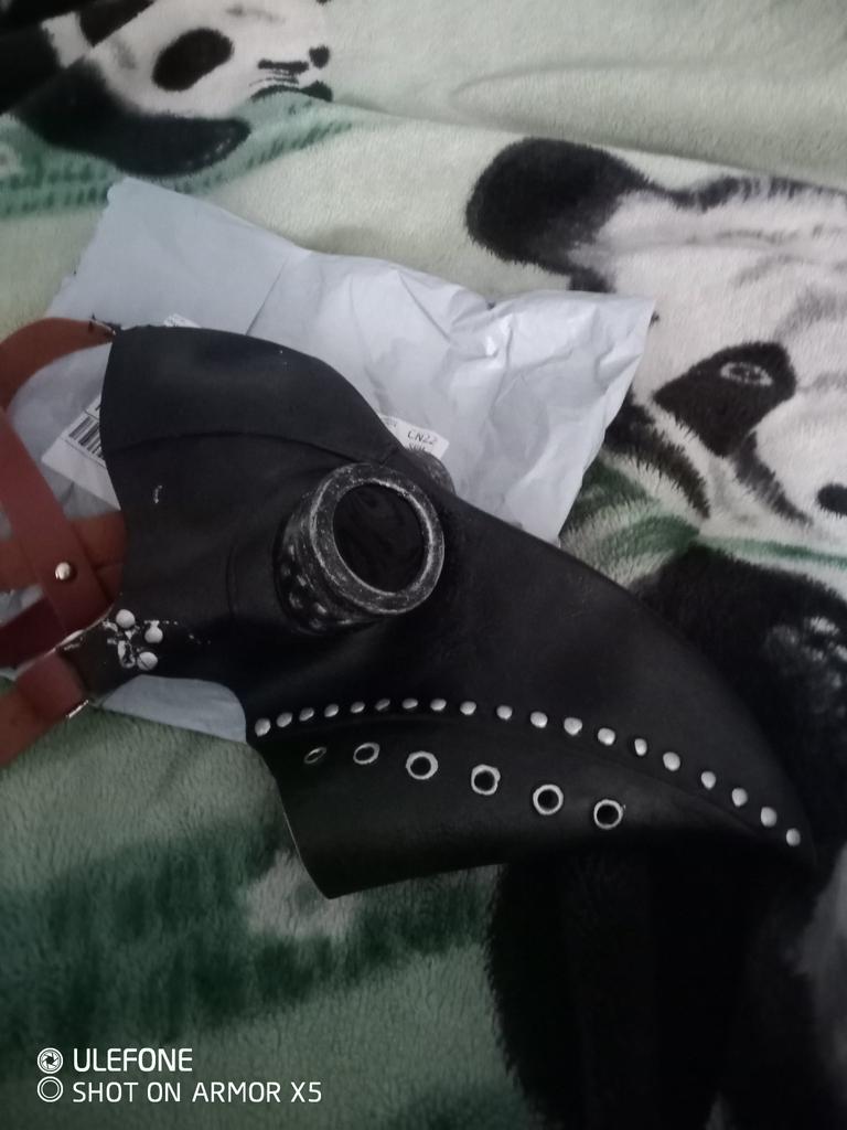 Нормальная резиновая маска, приехала за 2 недели, успела прийти до Хеллоуина! Есть мелкие косяки (не очень ровно прокрашены серебристые детали, да и "очки" на разном уровне), за свою цену товар неплохой. Отзыв пишу уже после тест-драйва) В ней видно нормально (пока не запотевают линзы), но очень маленькое поле зрения. Маска ОЧЕНЬ сильно потеет, и вся влага накапливается в клюве. Поднимать голову вверх не советую)) Или же можно периодически поднимать клюв и сливать воду, выглядит это забавно 😂😂 Думаю, эту проблему с запотеванием маски можно решить, если натереть внутри линзы мылом (возможно, кто-то видел этот лайфхак в интернете), или же сделать больше отверстий в маске. Дышать в ней можно, сначала душно, а потом привыкаешь. В общем, 4 🌟🌟🌟🌟, всё хорошо, но могло быть и лучше. Если есть какие-то вопросы или нужно доп. фото - пишите)