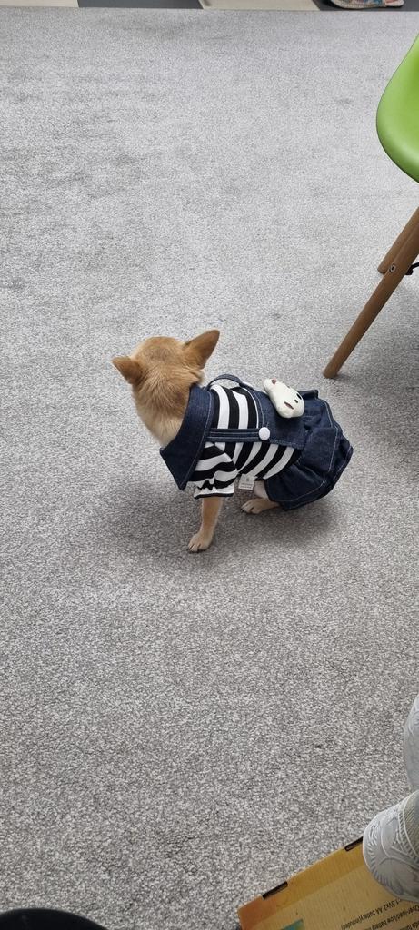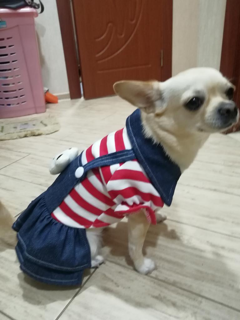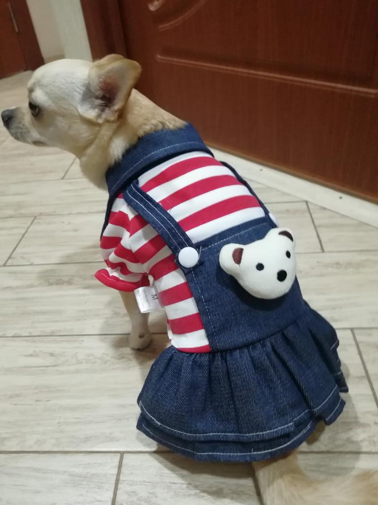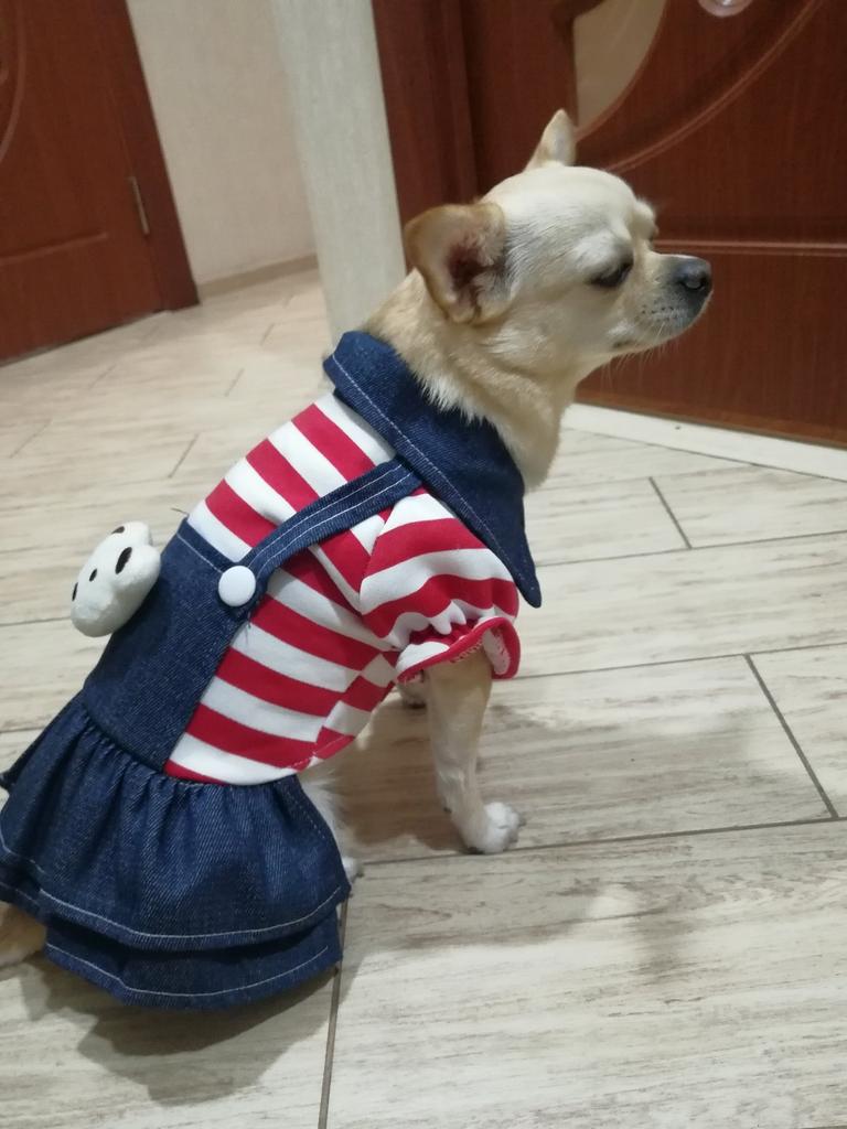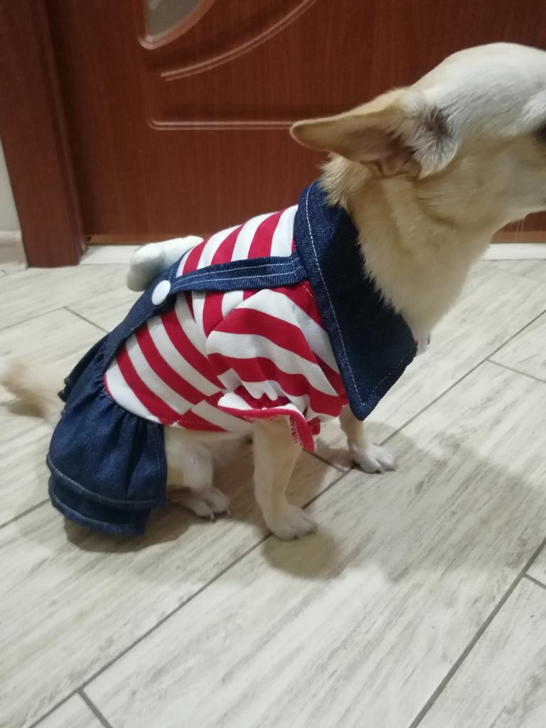 Очень нравится платье! На чихуахуа 2,7 кг размер S подходит отлично. Соответствует размерной сетке.Платье пошито качественно. Огромное спасибо продавцу и Joom. Доставка до Молдовы 36 дней.