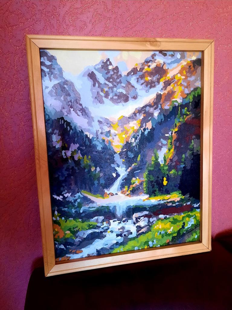 🖼КАРТИНА ПО НОМЕРАМ🖼 Заказала целых три штуки, показываю первую, две других и не начинали ещё! Изначально покупала ребёнку, но в азарт вошла вся семья, и даже муж вдохновился рисованием))) Рисовали очень долго, недели две, по пару часов в день, работы очень много было, всё же делали не тяп-ляп, а старались)) Честно скажу, очень интересно и безумно завлекательно, я подсела конкретно)))😄 ✔Пришла в коробке, коробка немного помялась, но не беда) В комплекте 27 баночек с красками; 3 кисточки разной толщины; плотное полотно, на котором рисуют; деревянная рамка (у продавца можно выбрать вариант и без рамки), а также гвоздики и петельки для того чтобы закрепить и повешать на стену) Размер 40×50 см 🛬Доставка в Беларусь, Витебск🇧🇾 27 дней с полным отслеживанием, товар приехал в сборной посылке👌 ✨Покупкой очень довольна, действительно интересное занятие и в итоге красивая картина получилась! СУПЕР👍👍👍 Очень рекомендую товар и продавца!🌟🌟🌟🌟🌟 🌞Всем шикарного настроения и только позитива!😚😉