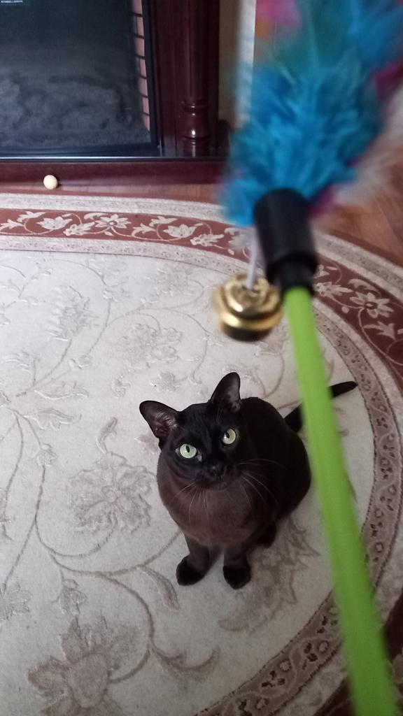 Отличная палочка. Кот в восторге. Большой колокольчик. Перья смешные. Только палочка была совсем маленькая и муж переделал на более длинную. Кот в восторге