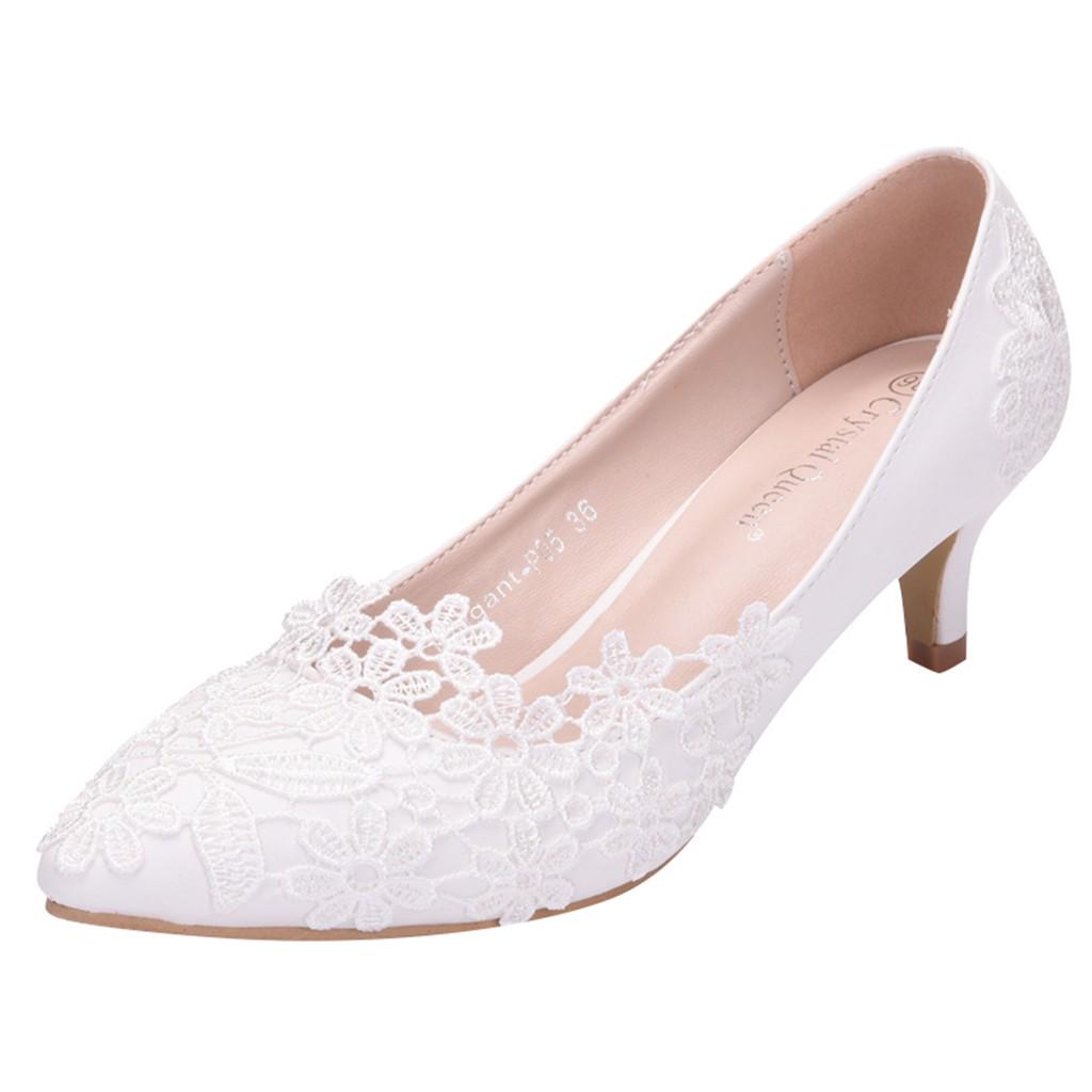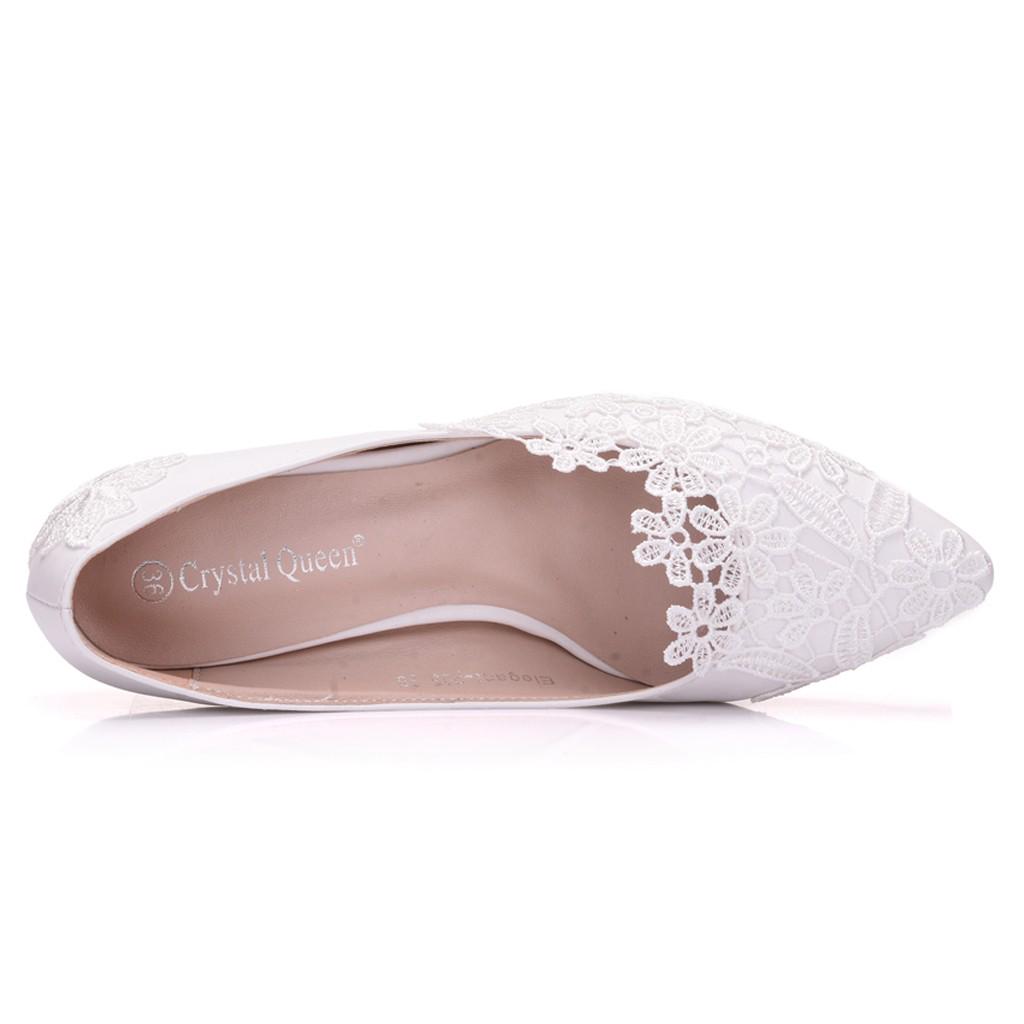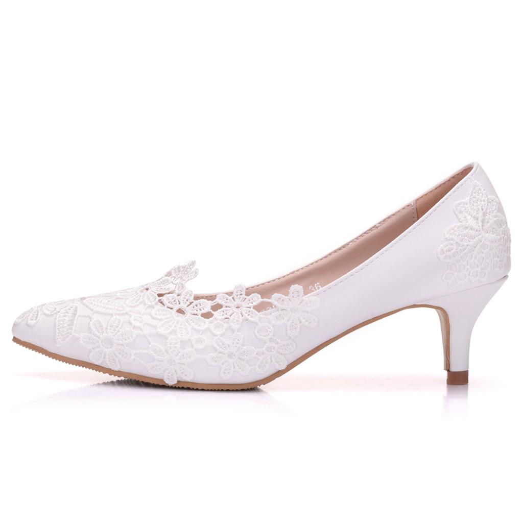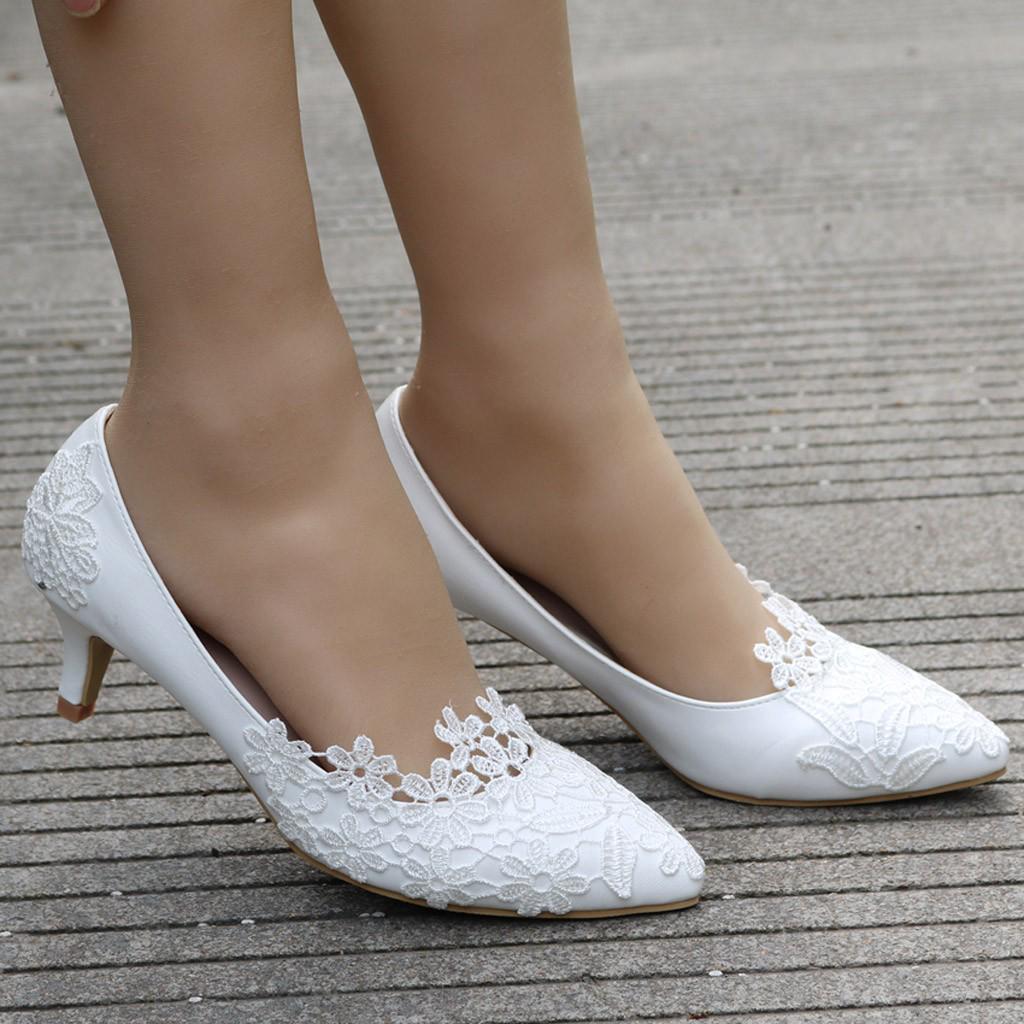 Женские остроконечные белые кружевные туфли на коротком каблуке с цветочным принтом Белые свадебные повседневные туфли