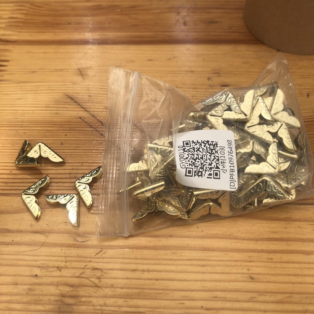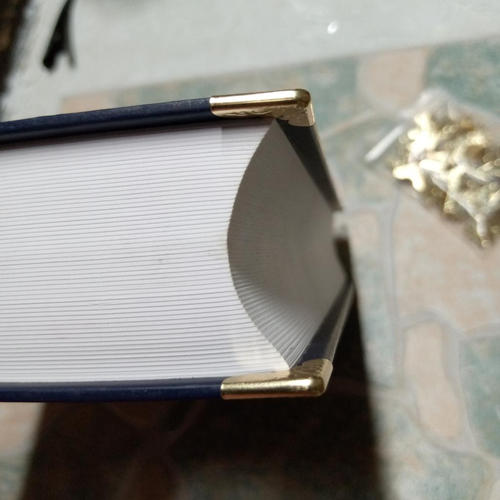 Замечательные уголки. Спасибо большое продавцу. Крепятся очень легко, прижимать можно и пальцами. Такой маленький элемент, а придает книгам элегантный вид🤩😍👌 Дошло в срок, обещанный продавцом. До Ростовской области 24 дня. Количество в пакетике 101.