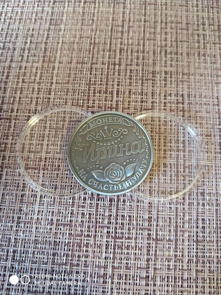 Монета Ирине на счастье и удачу! Качество хорошее👍 Доставлена монета в круглом прозрачном футляре. Диаметр монеты 39 мм, а футляра - 45 мм. Приобрела подруге как приятное дополнение к подарку на ДР🎈🎉🎊 Надеюсь, ей понравится!