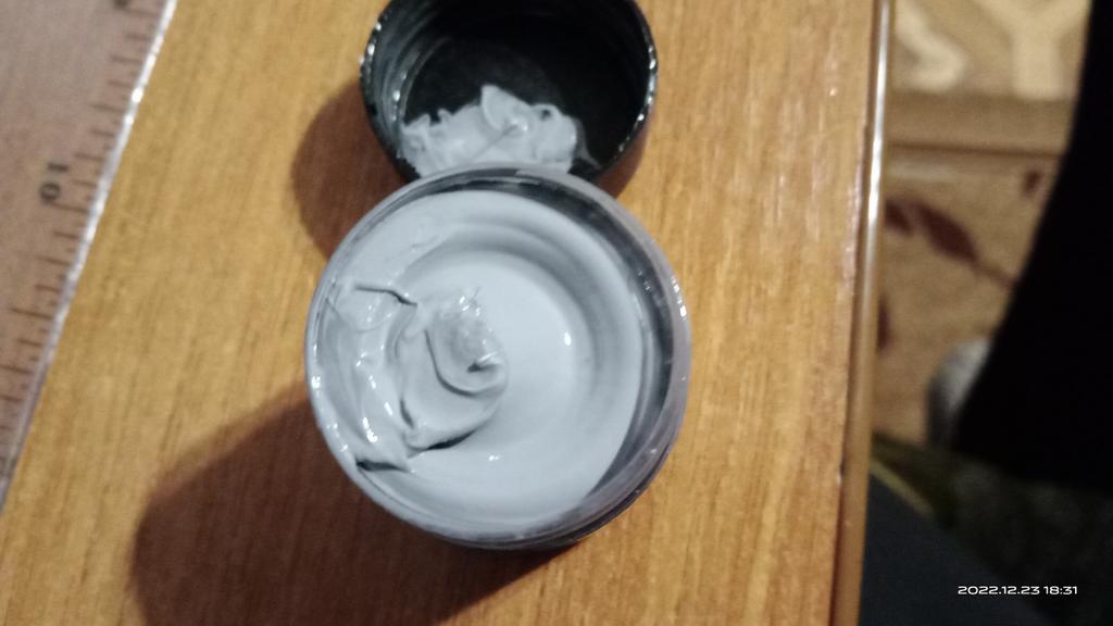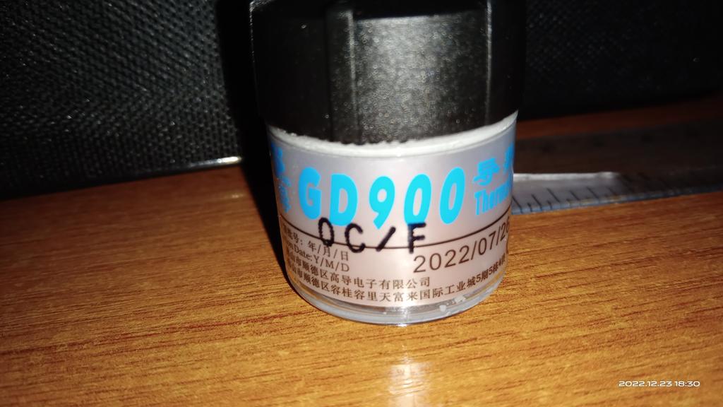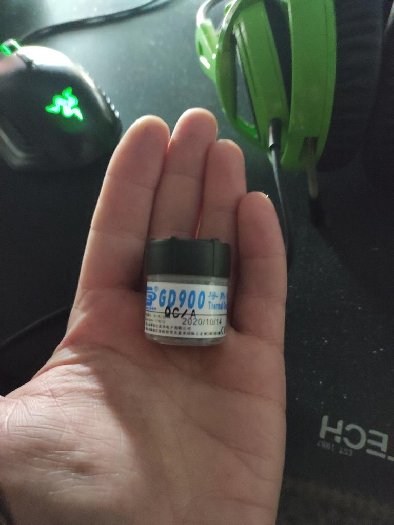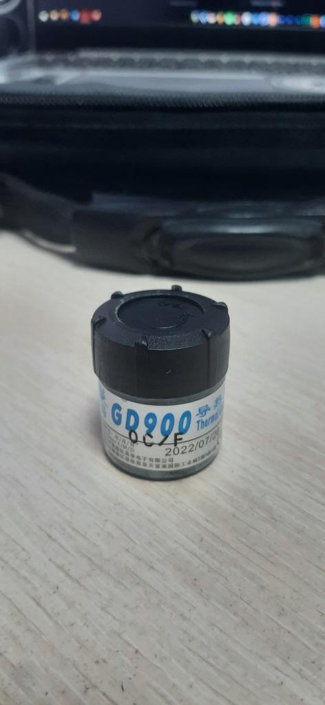 Вот такая вот маленькая баночка термопасты. Гораздо удобнее чем в шприце, но вместе с посылкой лопаточки не было, использовала свою. Пришла термопаста полная до самых краев, за что продавцу моё крайнее уважение и одобрение. Саму GD900 очень рекомендую✨✨✨