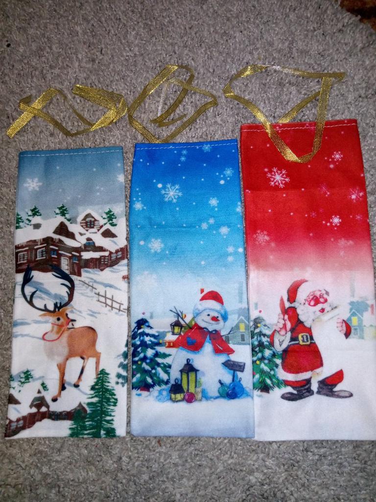 Праздничные мешочки для бутылок на Новый год! 🌟 Идеальный вариант для подарка на Новый год! Красивая вещь для праздничного стола! 🌟 Размер как в описании, но красный чуть больше , материал хороший , качество тоже, рисунок как на фото , нитки не торчат , запаха нет , цвет яркий 🌟 Шли через Казань полтора месяца, отслеживался на всём пути следования Спасибо Joom и продавцу, рекомендую! ❤️❤️❤️