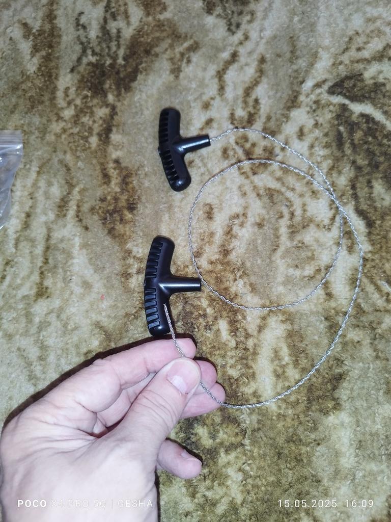 ПОРТАТИВНАЯ РУЧНАЯ МИНИ- ПИЛА Из за труднодоступных местах выручает мини-пила..... Попробовала....работает.... понравилось Мини-пила состоит из двух пластиковых ручек, соединяющиеся двойной проволокой зубчатой Плюс: мало место занимает, удобно в походах и не только..... Надеюсь на долговечность.... От пробовала на сухих сучья отлично работает, а вот "на живых" сучьях с диаметром более 3 см и больше проблематично - застревает...