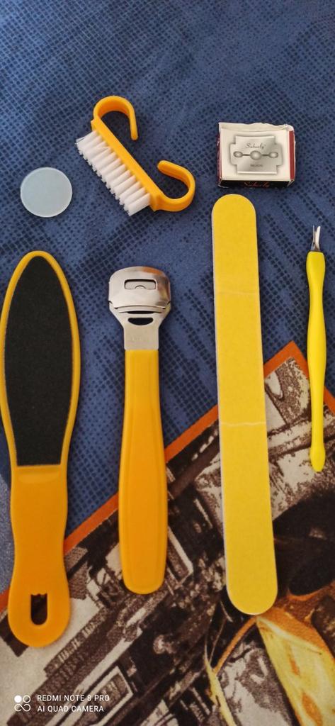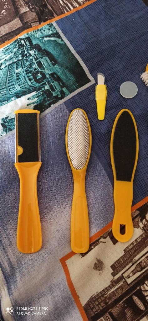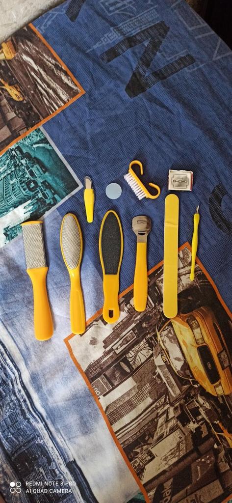 Заказывала набор для педикюра, в наборе есть 8 предметов также есть дополнительные лезвии всё чистит убирает хорошо, пилка очень хорошая думала сразу после первого применения можно выкинуть, но нет пилка хорошая. Мне очень понравился данный набор для педикюра всем советую.