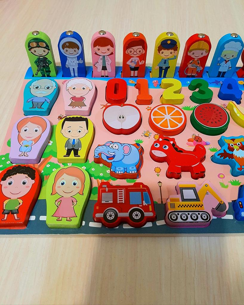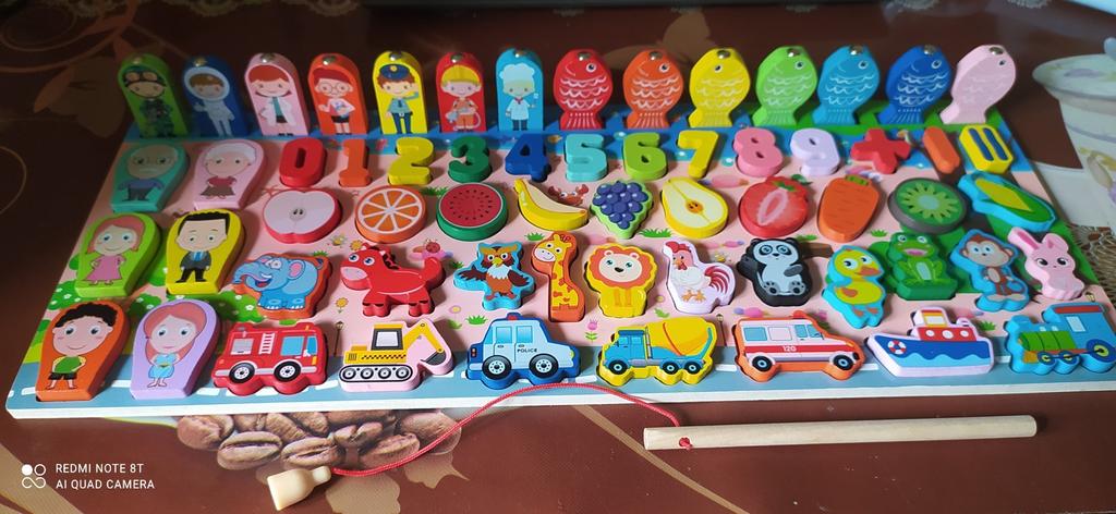 💥РАЗВИВАЮЩАЯ ИГРУШКА ДЛЯ МАЛЫШЕЙ💥 ⚘Дочка в восторге от этой игрушки. Сейчас ей почти 1,5 года и подобные игрушки ей очень нравятся. ⚘С помощью этой игрушки с малышом можно поизучать 💫фрукты 💫животных 💫 профессии 💫транспорт 💫 членов семьи 💫цифры 💫решать примеры 💫играть в рыбалку ⚘Человечки -профессии и рыбки оснащены магнитиками и с помощью удочки их можно поймать и переместить ⚘Место для вкладышей подписано на китайских и английских языках. Так что можно и языки поизучать. ⚘Игрушка сделана из дерева. Никаких неприятных запахов нет. Все сделано качественно. Думаю это будет любимая игрушка моей малышки.