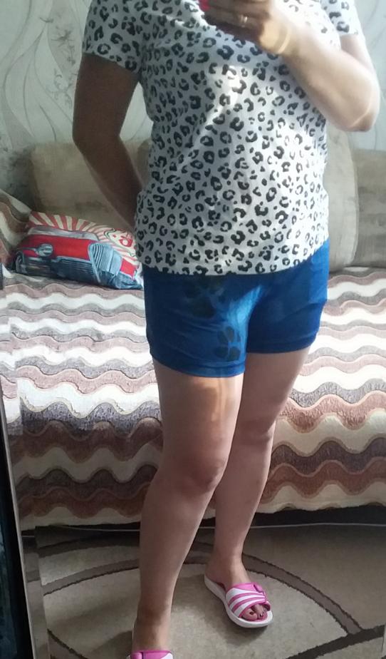 Материал приятный к телу и с виду шорты симпатичные, но не такие как на картинке. Очень большое расстояние между шагом и резинкой, т.е. или резинка на талии (т.е. выше пупка), или её надо заворачивать, или шорты в шагу оказываются где-то очень низко. В общем, на пляж не пойдёшь, только дома за компьютером сидеть.