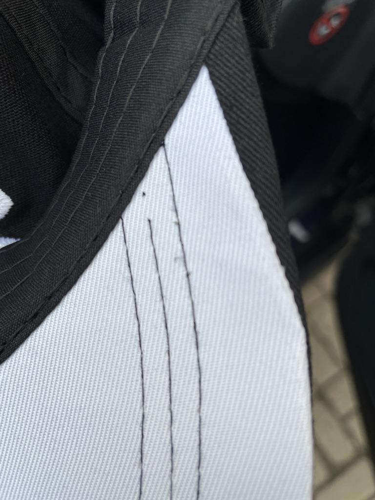 Стрёмная кепка. Белая ткань снизу козырька пришита криво. Или это дизайн такой или пьяный мастер, х.з. Думал на даче носить, но потом просто подарил пацанам в автосервисе для работы.