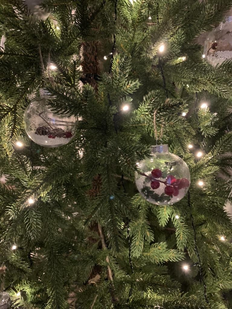 Оригинальные прозрачные ёлочные шары с красными ягодами внутри. 10 шт