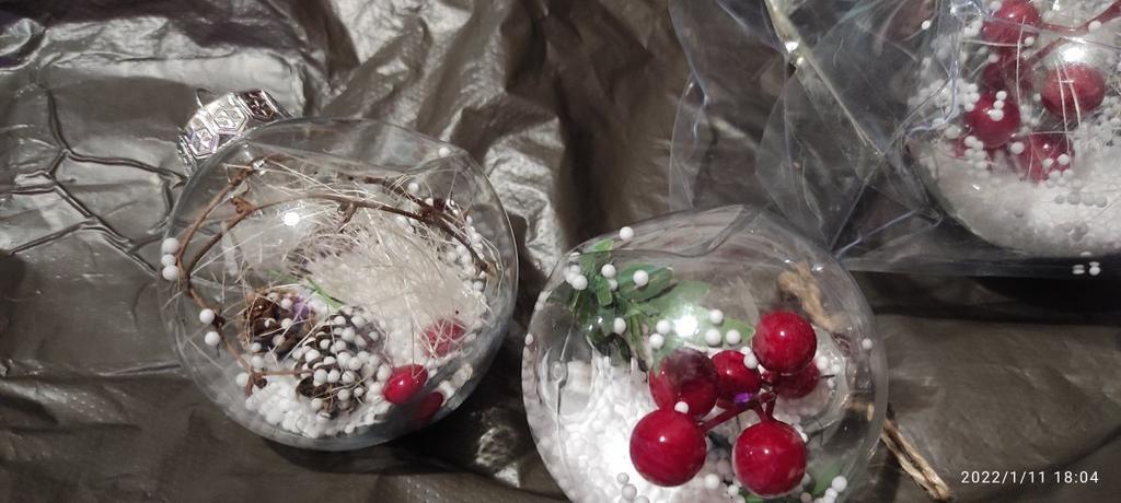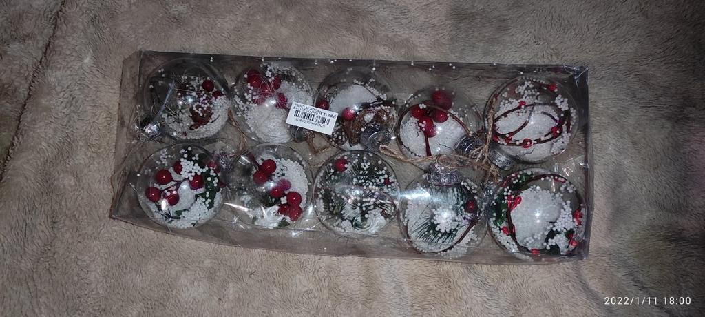 Шары пришли за 2 недели, очень быстро; отслеживались до пункта выдачи. Упакованы в пластиковую коробку и сверху один слой защитного материала. Упаковка не очень для такого товара, но не смотря на это шары пришли в приличном состоянии. 2 шара были с вмятинами- легко выпрямились ( надавила карандашом изнутри, пластик вернулся на место), немного видны потертости сейчас в этих местах. Сами шары великолепны, очень красивые. При желании можно что-то убрать или добавить в шар . Все 10 шаров разные. Продавца рекомендую. Дополняю:) шары очень украсили ёлку, очень довольна что их заказала; возможно что каждый год их и не будем вешать, так как весь остальной новогодний декор делали в стиле этих шаров, они задавали тему. Но что захочется что-то с ними повторить-это точно✨🍾🎄