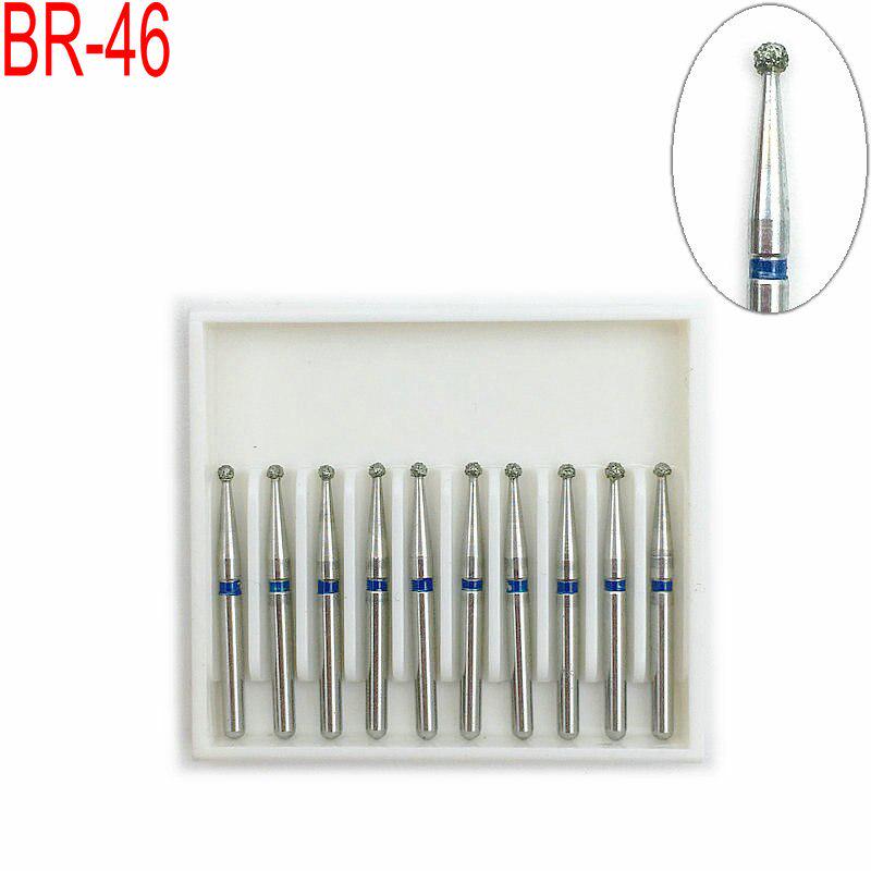 10 шт./компл., высокоскоростные алмазные боры FG для полировки, сглаживающие шариковые круглые стоматологические боры BR-46