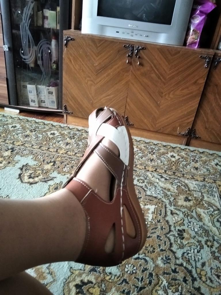 Покупала маме. Такого восторга от неё не слышала никогда. У неё проблемные ноги, не получается полностью избавиться от мозолей и они периодически о себе напоминают жутким жжением. А так как мозоли располагаются между пальцями, практически в любой обуви долго ходить не может. И тут чудо какое то. Довольно и счастлива. Лёгкие как тапочки, вентелируються,подошва удобная, стелька натуральная. Спасибо продавцу и изготовителю. Рекомендую от души. Но есть один нюас. У кого широкая нога в ладышке, или очень отекают ноги ,может ремешок оказаться коротким. Учитывайте , чтобы потом не обижаться на продукцию. Удачных покупок на любимом Джуме.