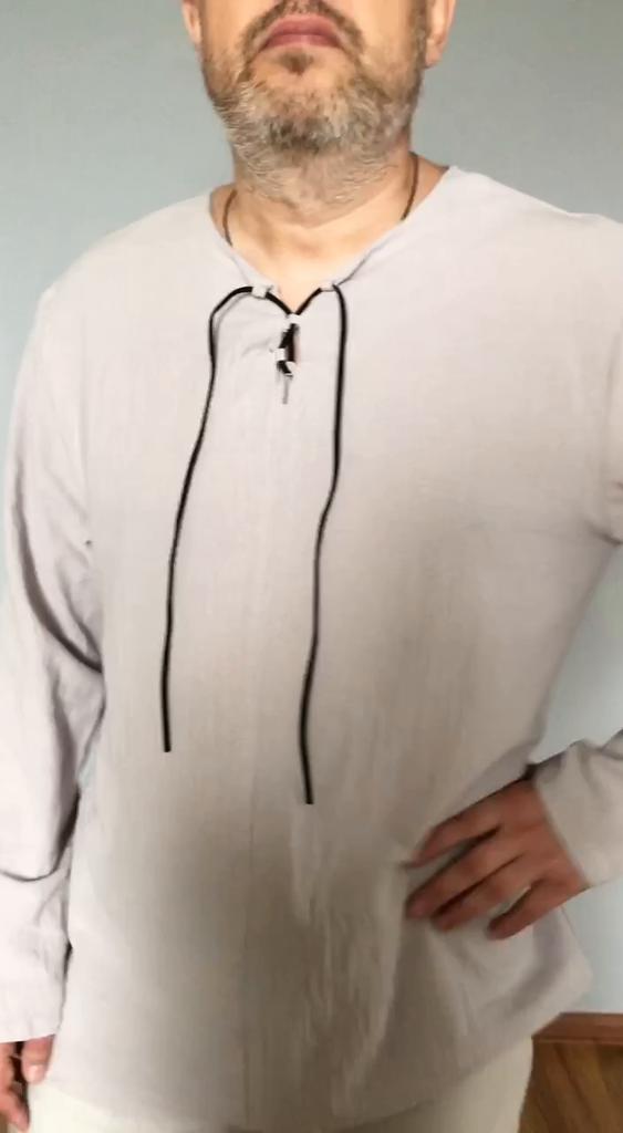 Мужская хлопковая винтажная рубашка без пуговиц INCERUN
