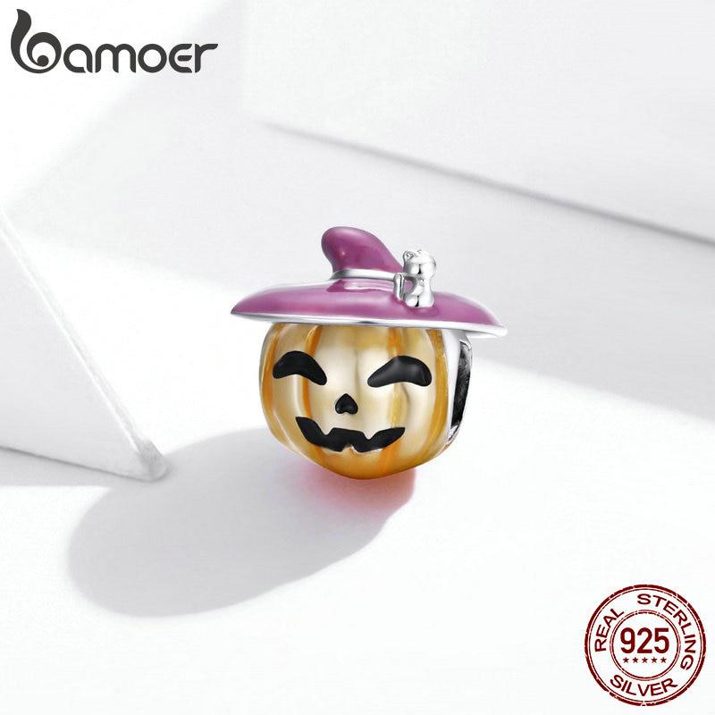 Bamoer из стерлингового серебра 925 пробы, подвеска в виде тыквы на Хэллоуин для оригинального посеребренного платинового браслета, ювелирные изделия