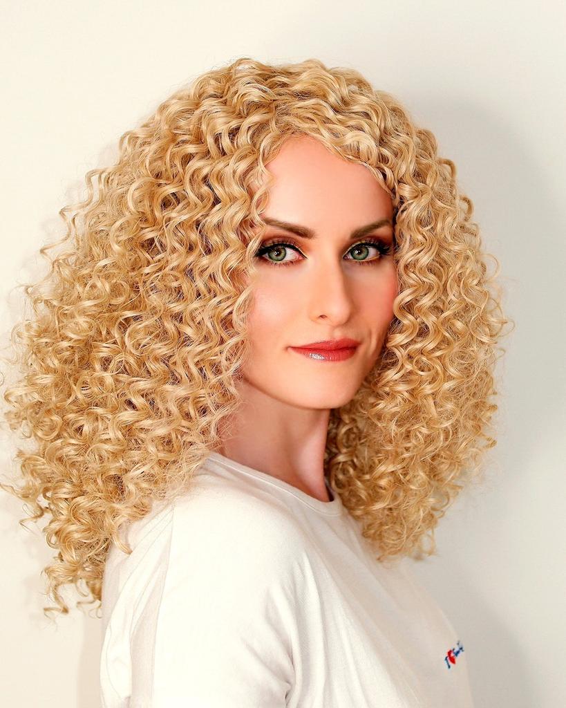 Парик густой, завиток очень тугой, полагаю, что этот парик не подлежит расчёсыванию. Смотрится совсем неестественно. Цвет мне совсем не понравился, это холодный блонд, а мой цвет тёплый медовый блонд. Носить не буду и другим не советую, потому что слишком сценический парик.