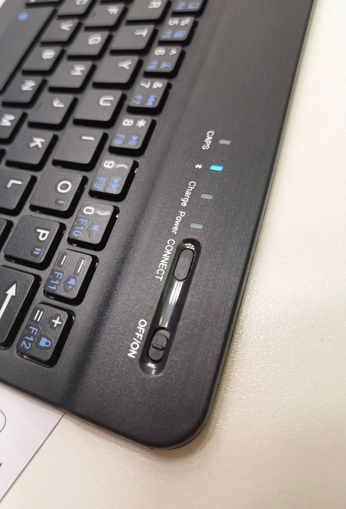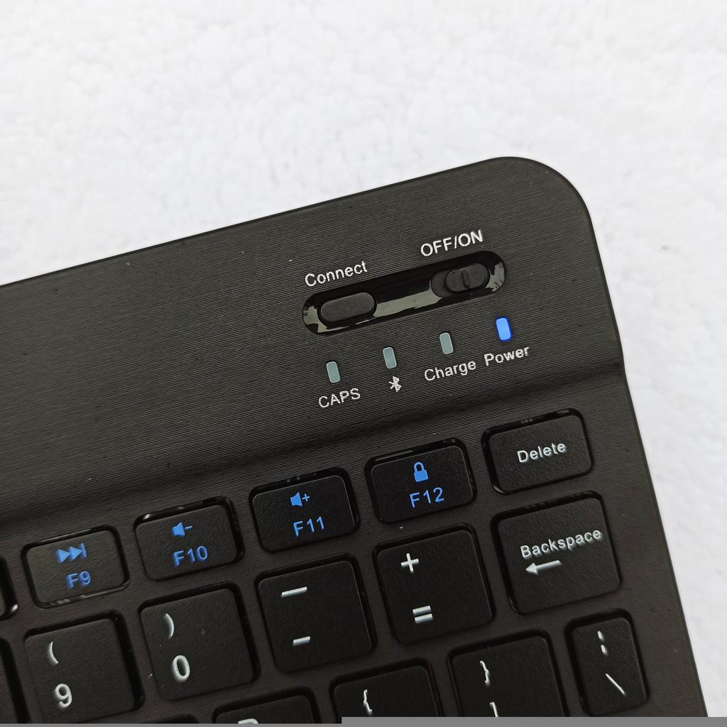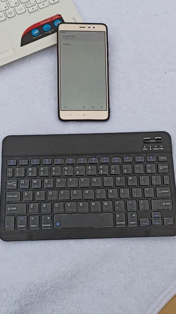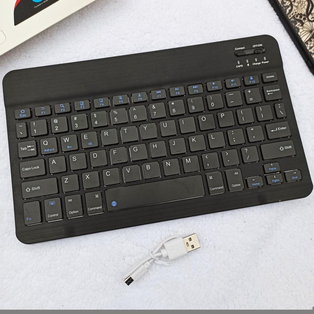 Отличная беспроводная клавиатура для планшета, ноутбука, телефона и т.п. что имеет блютуз. Ведь клавиатура подключается с помощью блютуза. Давно уже посматривала на такие клавиатуры, и вот решила заказать. Пришла клавиатура хорошо упакована: почтовый пакет, где клавиатура в фирменной коробочке, которая была обмотана пакетом в пупырку. Коробка немного примялась, но клавиатура пришла в идеальном состоянии. В комплектации: ⌨️ Клавиатура ⌨️USB кабель для зарядки На клавиатуре есть кнопка вкл./выкл. самой клавиатуры; вкл./выкл. блютуза и все остальные кнопки, что и на обычных проводных клавиатурах. Также есть лампочки индикаторы, которые показывают когда она вкл./выкл.; или вкл. блютуз, или же шрифт больших букв. Имеет стандартную QWERTY раскладку, буквы только на английском. По ссылке клавиатура есть разных размеров, я заказывала самую большую - 10дюймов, ее замеры: 24,5см. на 14,5см. Клавиатура подключается быстро, никаких драйверов или программ чтобы работать на ней не нужно. В управлении удобная (уже набирала текст на телефоне с ее помощью). И немного о качестве: сделана из прочного материала. Клавиатурой очень довольна. Рекомендую, не пожалеете.