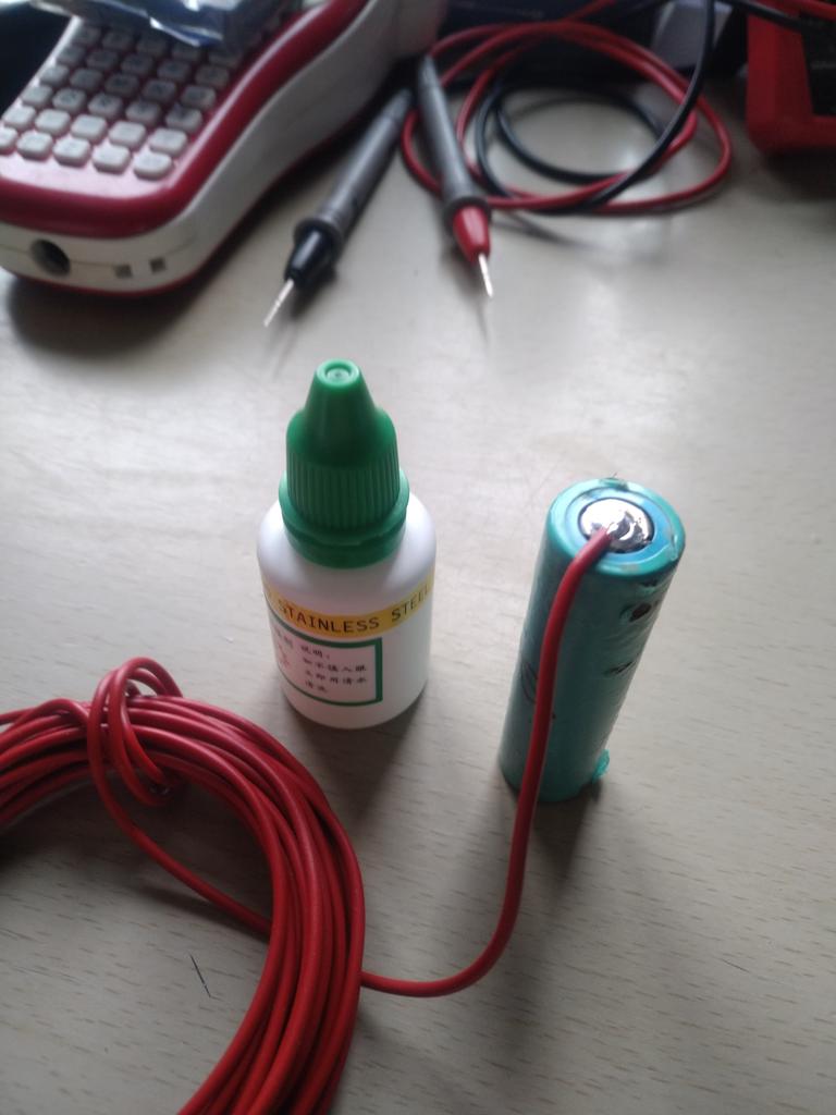 Флюс для пайки. Заявлено, что по нержавейке, но сильно сомневаюсь. У китайцев оцинкованная жесть - это уже нержавейка, и если этот флюс будет паять хотя бы контакты аккумуляторов 18650, для чего и брался, это будет уже хорошо. Дополню после испытания