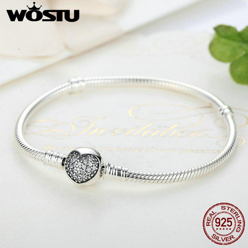 WOSTU Браслет-подвеска и ювелирные изделия из стерлингового серебра 925 пробы со сверкающим сердцем и змеиной цепочкой