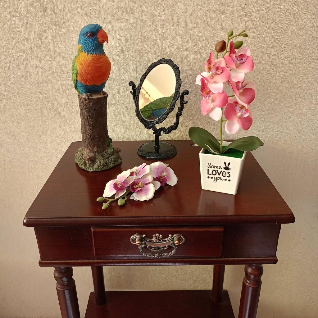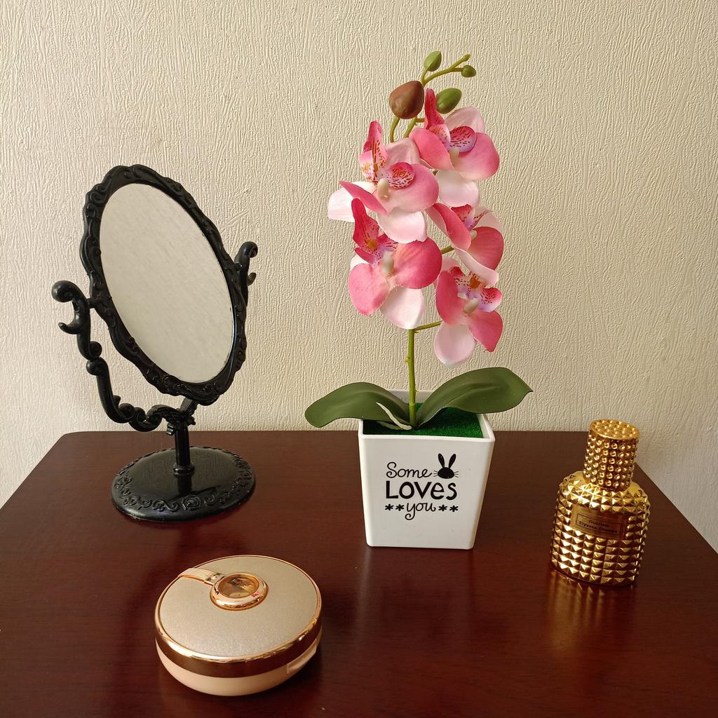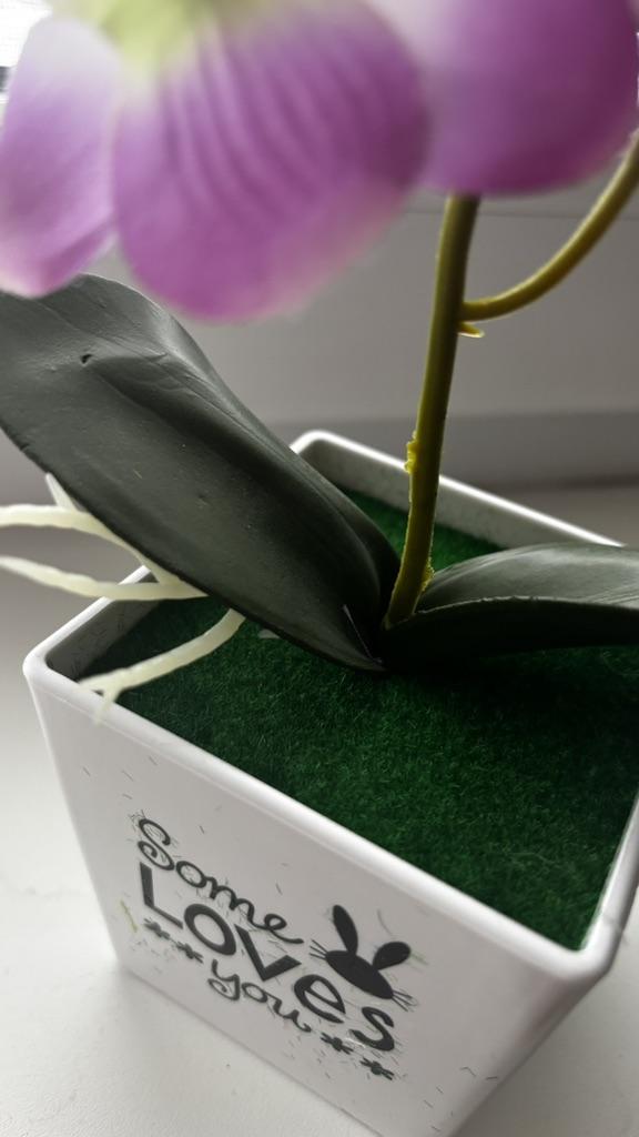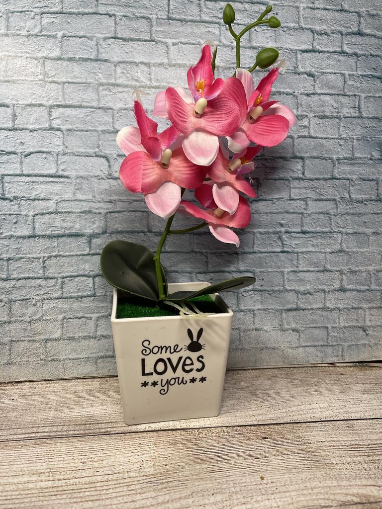 🌺ИСКУССТВЕНАЯ ОРХИДЕЯ В ГОРШКЕ🌺 Очень милое украшение для интерьера Вашего дома! Я разместила эту орхидею на свой туалетный столик. Орхидея выполнена вполне реалистично. Её цветы изготовлены из ткани, а зелёные листья из латекса. Высота орхидеи вместе с горшком составляет 28 см. Горшок выполнен из пластика. Спереди его украшает милый декор в виде зайчика и надписи Some Loves You, что в переводе с английского языка означает: некоторые любят тебя. Размер горшка составляет 6*7*7,5 см. Внутри горшка размещён искуственный зелёный мох. Сама композиция лёгкая, но устойчивая. Получила я её без коробки. Орхидея была упакована в целлофановый пакетик. К качеству изготовления претензий нет. Постороннего запаха орхидея не имеет. Могу рекомендовать этот цветок для украшения Вашего дома или для оформления фотографий.