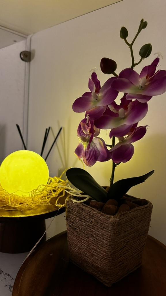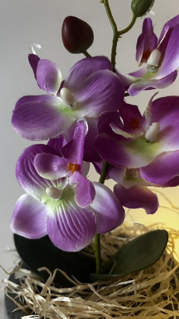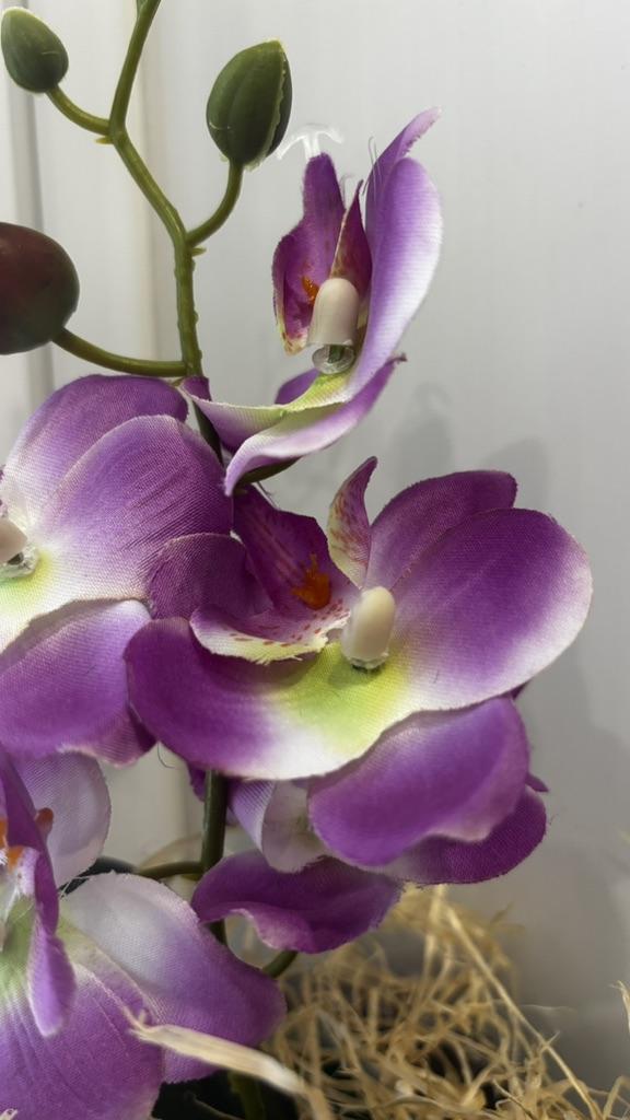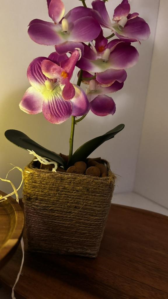 Искусственная орхидея У меня живые цветы 🌷 не живут, мы не находим с ними взаимопонимания) Есть лишь один, который мне подарили много лет назад, на день рождения. Видимо, он оказался настолько живучим, что даже загибаясь периодически, все равно, спустя время очухивается) и растет дальше. Я, конечно, не зверь) просто не умею обращаться с цветами. Я его поливаю, рыхлю землю, несколько раз пересаживала, потом подсадила к нему похожий, они подружились, и выглядят вполне здоровыми и счастливыми). 📌Но цветы очень гармонично смотрятся в интерьере, придают дому жилой вид, именно поэтому я иногда использую в интерьере либо сухоцветы, либо искусственные цветы, лишь бы они выглядели реалистично. 📌Эта орхидея оказалась милой, у дочери на окне стоят настоящие, и я сравнила - похожи. Даже ус под листьями торчит). 📌Листья мягкие, можно менять их форму, и все цветочки тоже можно расправить так, как нравится: они послушные. Но вот кашпо мне категорически не нравится. Поэтому, я его декорировала веревками, а страшный зеленый мох прикрыла керамзитом. Теперь красиво) 📌Я выбрала фиолетовый цвет, у продавца есть другие.