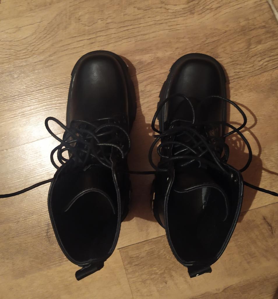 Взяла свой 36 размер (23см) - подошло. Ботинки норм, но немного не нравится их вид сверху - этот квадратный нос выглядит стремно. Также обнаружила дефект: на левом ботинке оторвана петелька для шнурков, но я ей все равно не пользуюсь, поэтому не страшно. Заказ пришел за 25 дней, ничего не помялось