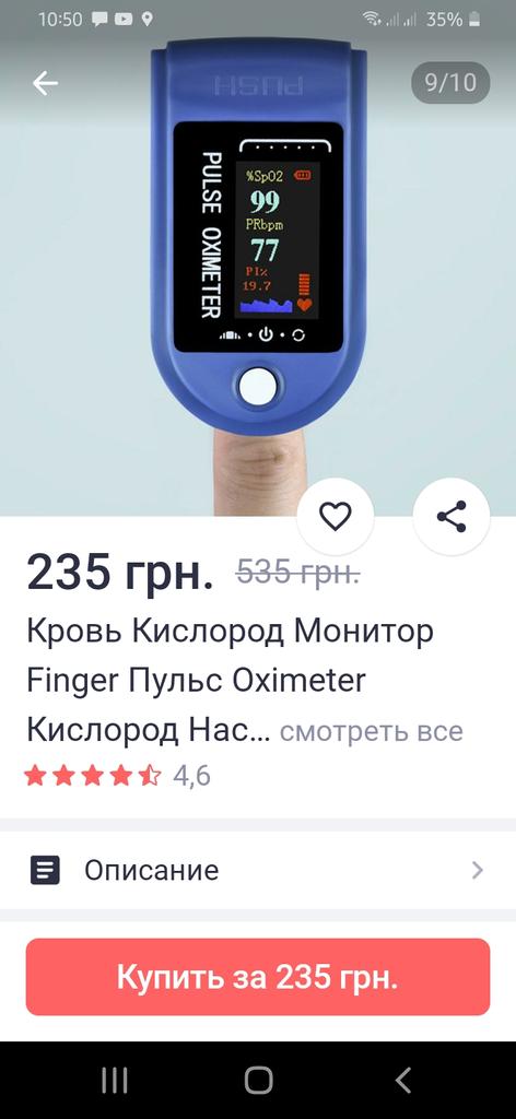 Качество: проверяя уровень кислорода, прибор показывал сатурацию от 80 до 98% в один и тот же момент в течение 15 минут. Ничего не беспокоило, все было в норме. Другой прибор показывал 96-97. Также вопрос к доставке. Доставили в райцентр до которого 12 км. Ехать нужно было автобусом и маршруткой. Хотя в моем населённом пункте есть укрпочта и отделение новой почты. И выдавали посылку 1 час. В аптеке пропал интернет и только через час продавец позвонил в службу доставки и они уже дали добро на выдачу посылки