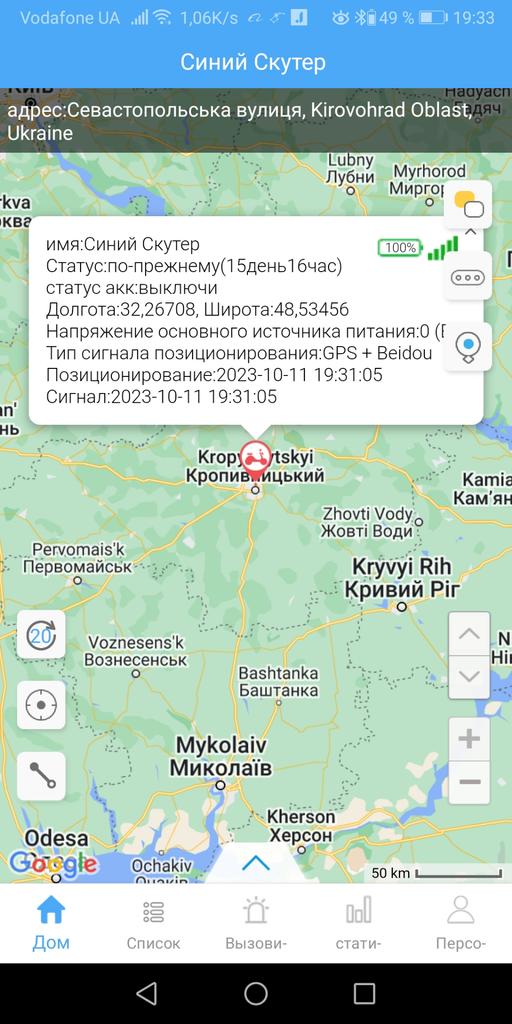 Все получил в срок. Работает. Нужно разобраться с программой и настройкой. Точность хорошая. КЗавтра поставлю на мотоцикл - проверю в действии. Карточку на украине поставил водафона,тариф - device S. Не правильно начало работать. Сегодня проехал от силы 5 км на работу, а в программе отображается, что 300 км проехал - из кропивницкого аж за Затоку Одесской области и стою сейчас посреди моря. Уже с неделю такое, то по городу черти где нахожусь (хотя там не был), то стою на месте, а мне рисует, что я круги наматываю. Нужно менять трекер. Прикрепил скриншоты. Электроскутел чтолько проехать ну никак не мог