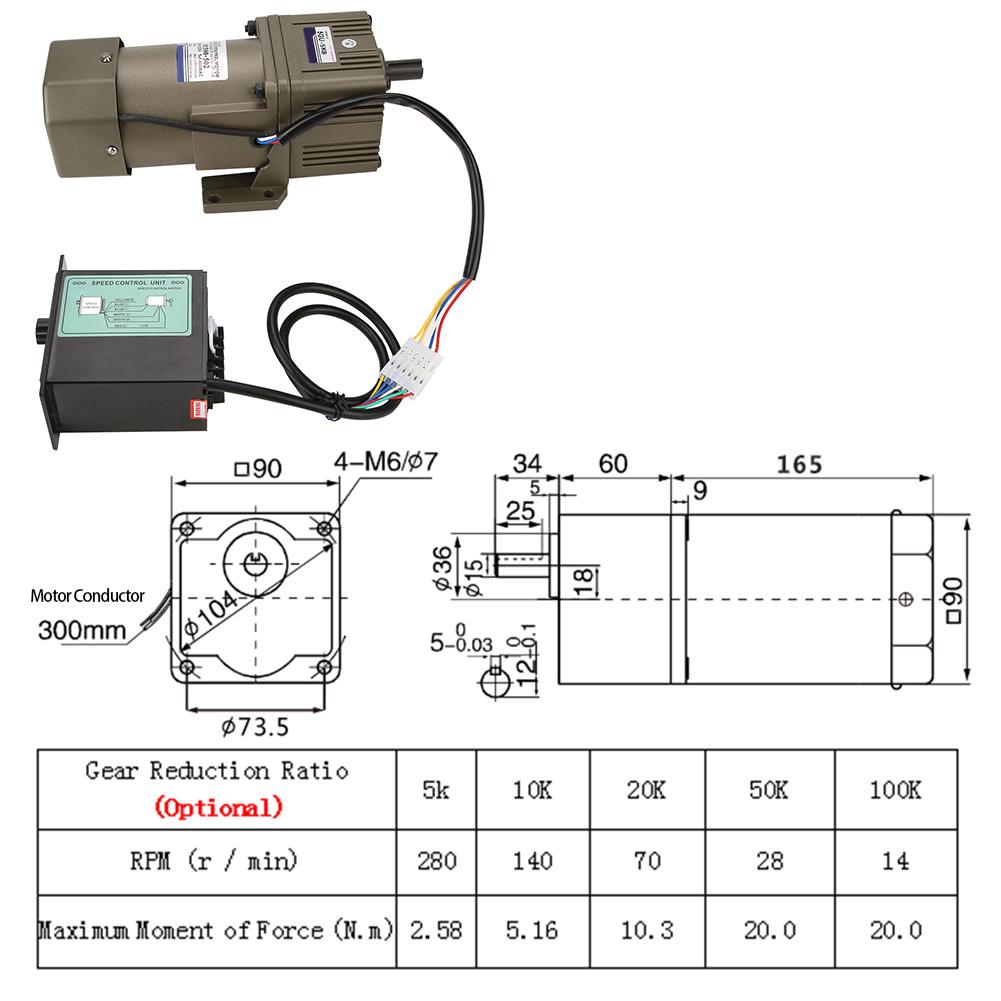 AC 220V 90W высокий момент силы, обратимой и регулируемой скорости.