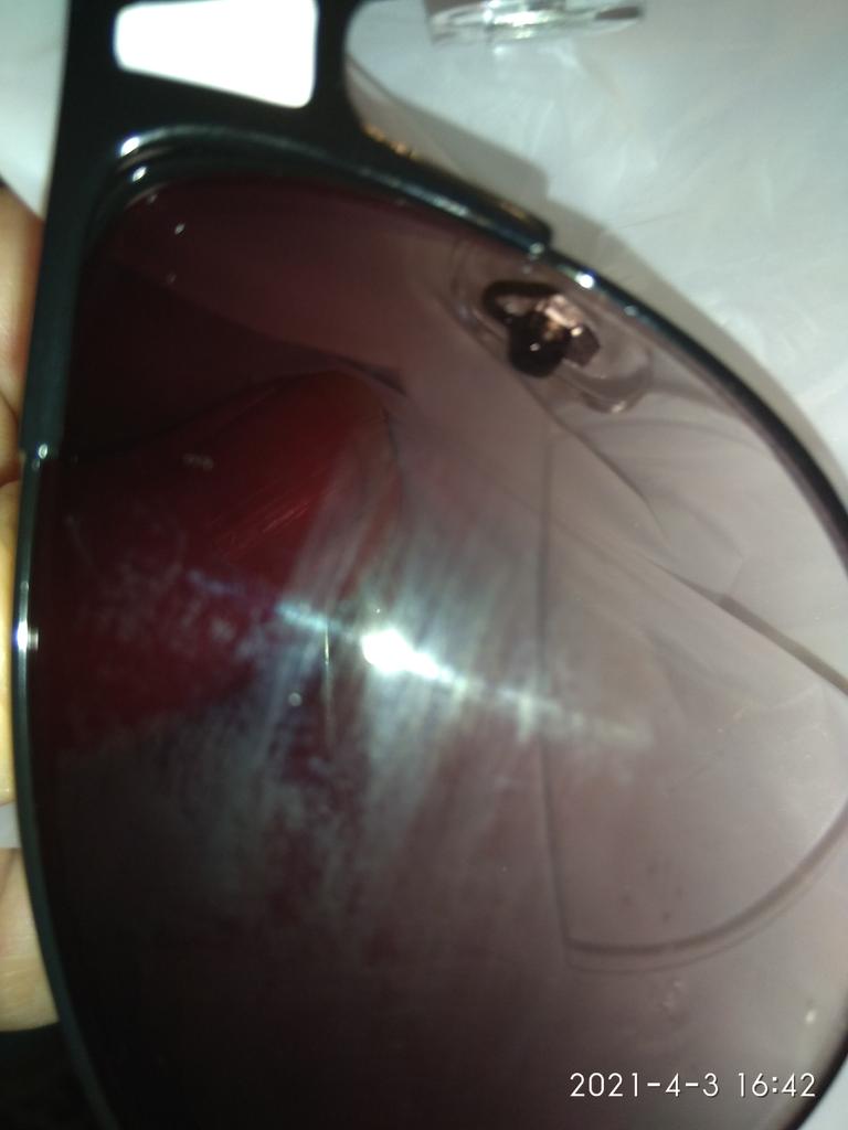 Очень расстроена! Очки были очень плохо упакованы. Как можно такое изделие положить просто в тонкий целлофановый пакетик. Трещина справа внизу. Я раньше покупала очки, они приходили в защитной упаковке.