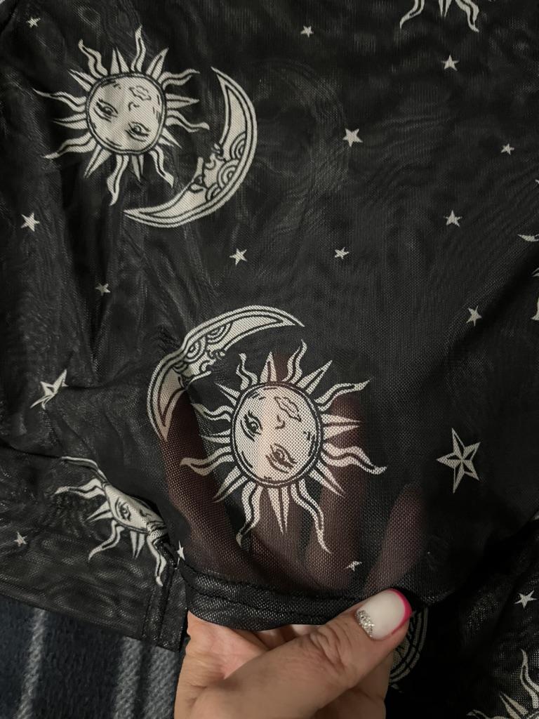 Женские сексуальные сетчатые топы в стиле Харадзюку, прозрачная футболка с длинными рукавами, прозрачная футболка с принтом Солнца, Луны, звезд, женская клубная одежда — купить товар онлайн с бесплатной доставкой по всему миру!