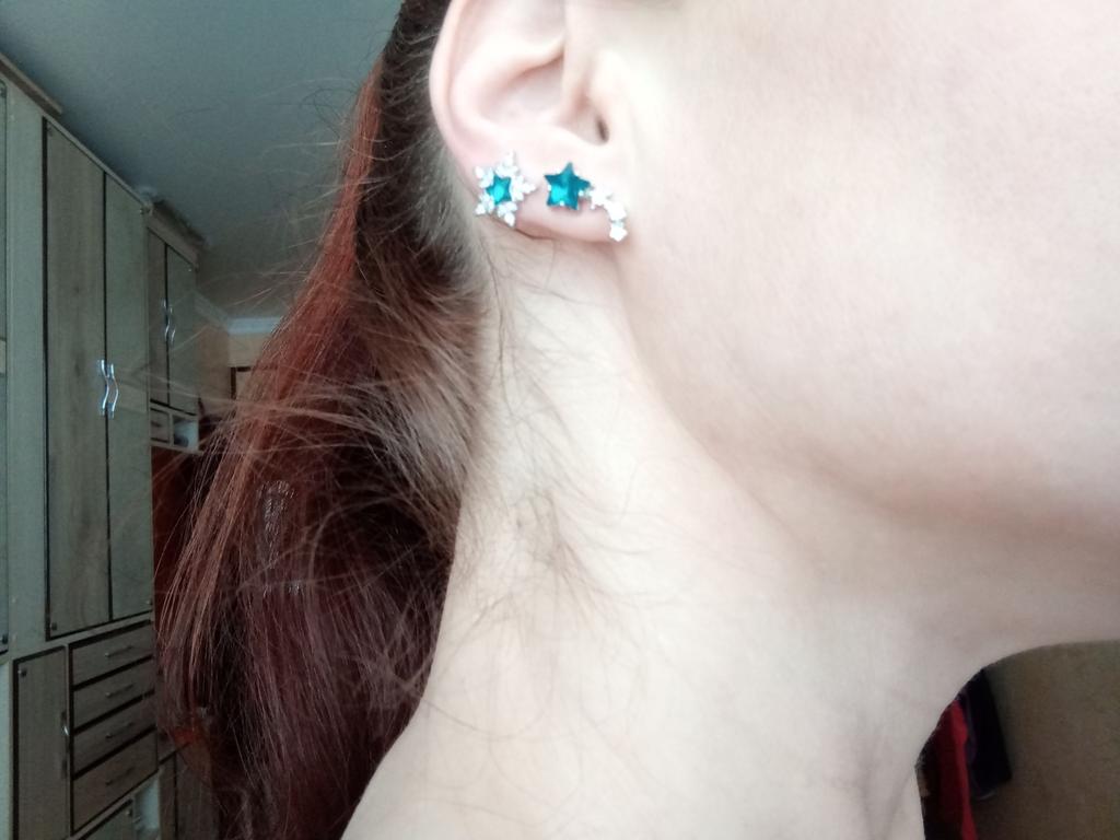 Эта - в середине. Все суперские. Каждая пара серег - линдон, все блестящие, красивые, застёжки крепкие, ни одна деталь не прилипает к магниту, значит, точно не стальные. Но очень длинные штырьки, это недостаток. На свои 3 дырки купила 4 пары серег, так как был непонятен масштаб. Теперь вижу, что носить их придётся по 2,одна дырка будет пустая, иначе чересчур) в общем, оказались крупнее, чем надо, но все равно супер)