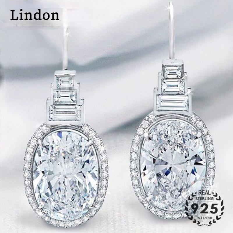 Женские серьги Lindon из стерлингового серебра с овальной формой, циркон, драгоценный камень, пагода, серьги-капли, подарки для свадебной вечеринки, ювелирные изделия