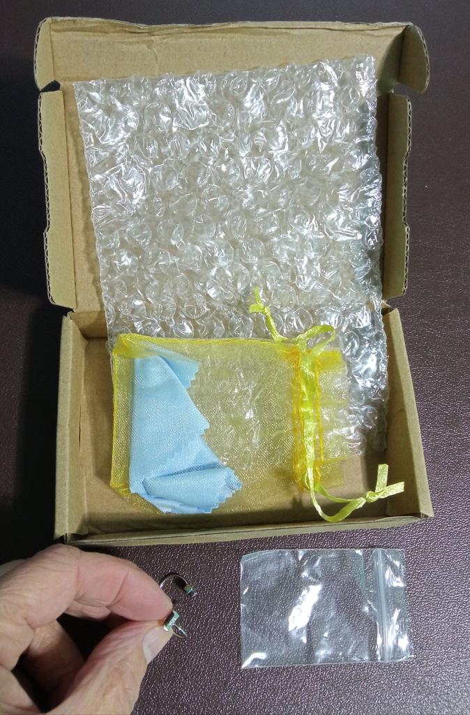 Серёжки очень маленькие и миленькие. Сделаны очень аккуратно. Тщательно были упакованы: в маленький целлофановый пакетик, потом в мешочек с тряпочкой для чистки изделия, потом в пакет с пупыркой и всё это было в картонной коробке. А сверху ещё и почтовый пакет с пупыркой.