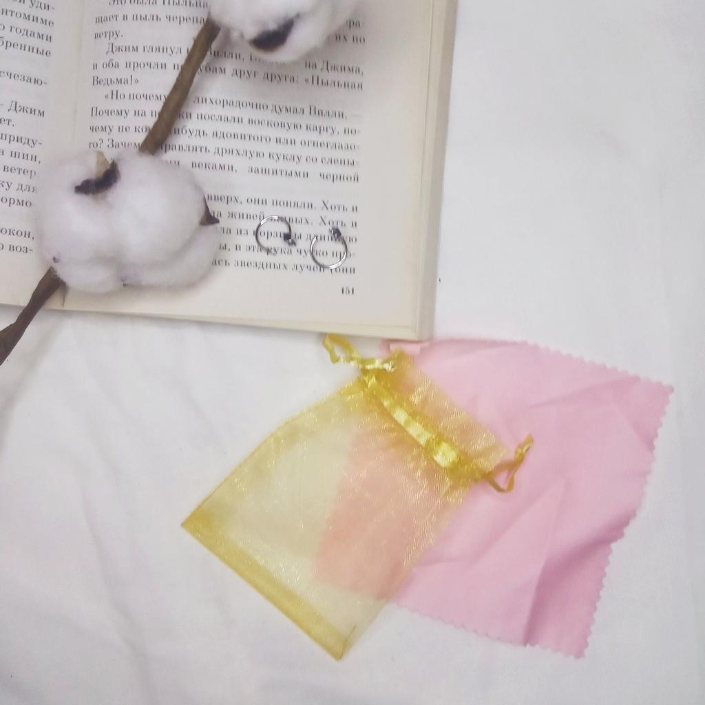 Очень милые сережки Просто прелесть, мимими. Люблю такое. Простые колечки с камушками на конце. На сережках стоит проба. К ювелиру не носила, но тест мелом наличие серебра подтвердил. Приходит в мешочке из органзы. В комплекте также салфеточка для ухода за серебром. Отлично подойдет для подарка. Заглушек нет, но они тут не особо и требуются. Я носила долго, серьги не перекручиваются и не выпадают. Прям милота милейшая.
