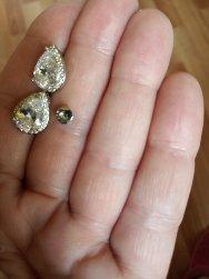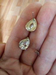 Серьги нежные, красивые. Камушки на месте. Внешне очень понравились. Застежка-гвоздики пользоваться нужно аккуратно. Когда застегиваешь- ножка застежка гнется. Наверное долго не прослужит, время покажет.