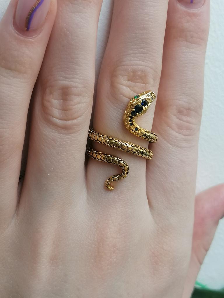 Винтажные кольцо в виде змеи с кристаллами