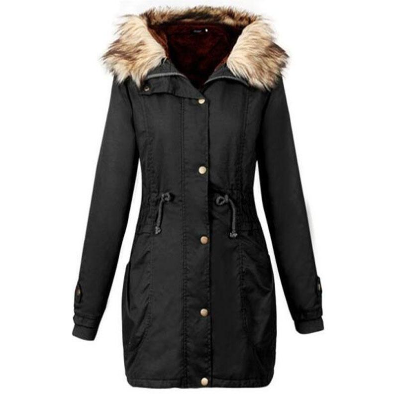 Зимнее женское пальто с меховым воротником и капюшоном, сохраняющее тепло, длинное пальто, пальто