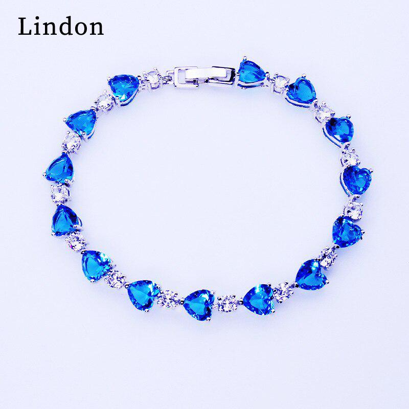 Женский хрустальный браслет Lindon в форме сердца, посеребрение ювелирных изделий с синим, фиолетовым, красным, шампанским, подарок на помолвку — купить товар онлайн с бесплатной доставкой по всему миру!
