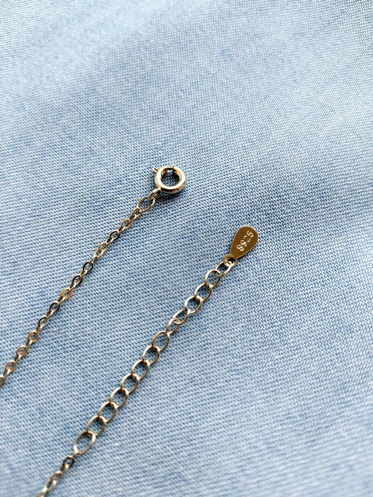 ⭐Цепочка-подвеска восходящая звезда🌛 ✔Доставка до Москвы за 3 недели; ✔Стоимость-357₽ А вот и вторая часть комплекта,который брала для сестры😊 Колечко я Вам уже показывала в отзыве,наконец-то пришла и цепь. Подвеска очень женственная, хрупкая и миниатюрная. Вот действительно девичья! На девушке/девочке будет очень нежно смотреться. Я за не имением сестры по близости показываю на себе. Как и кольцо-серебро. Проба стоит,см.подробные фото. Камушек похож на искусственный цирконий. Длина цепочки под самую шею-40см,запаса нет. Звенья все ровные,без изьянов. Замок рабочий. К покупке рекомендую, очень оригинальное изделие 😊 Всем добра и хороших покупок!🤗😎😍✌