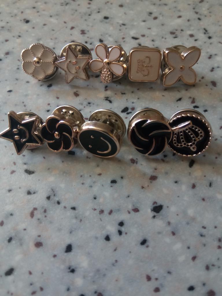 🖤Отличные брошки 👌💯🤍🖤; 🖤10 шт. как и заявлено продавцом; 🖤Все целые, никаких дефектов; 🖤Очень просты в использовании. На застёжке есть ушки, нажимаешь и открывается, также и закрывается; 🖤Металл тонкий и очень лёгкий, шляпка гвоздика пластиковая; 🤍🤍🤍Очень рада покупке, рекомендую к🛍️💯🫶🤗