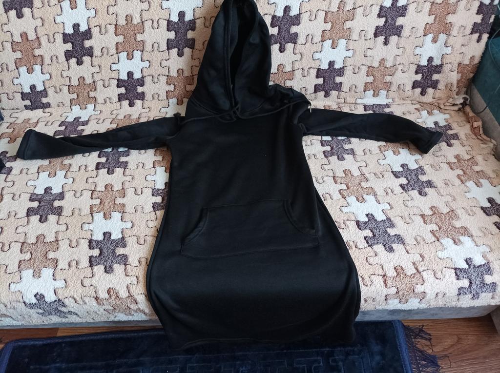 Платьеце тоненькое, на ощупь совсем синтетика. Утепление внутри, но ворс тонкий. Карманы хорошие, швы вполне ровные, нитки не торчат. Брала s, на свой 44 размер. Думала, что если будет маленький, то отдам дочери (у неё размер 40-42). Но даже мне оказался далеко не в обтяжку. Довольно длинное (мне по колено при росте 158), рукава как раз. Доставкой, упаковкой и состоянием пошива довольна. Постираю - дополню отзыв :) Дополняю отзыв: стирала в стиральной машине на обычной стирке с отжимом. Ничего не деформировалось, повесила сушиться на плечики на балконе уже почти сухое (синтетика же!). В размере не изменилось.